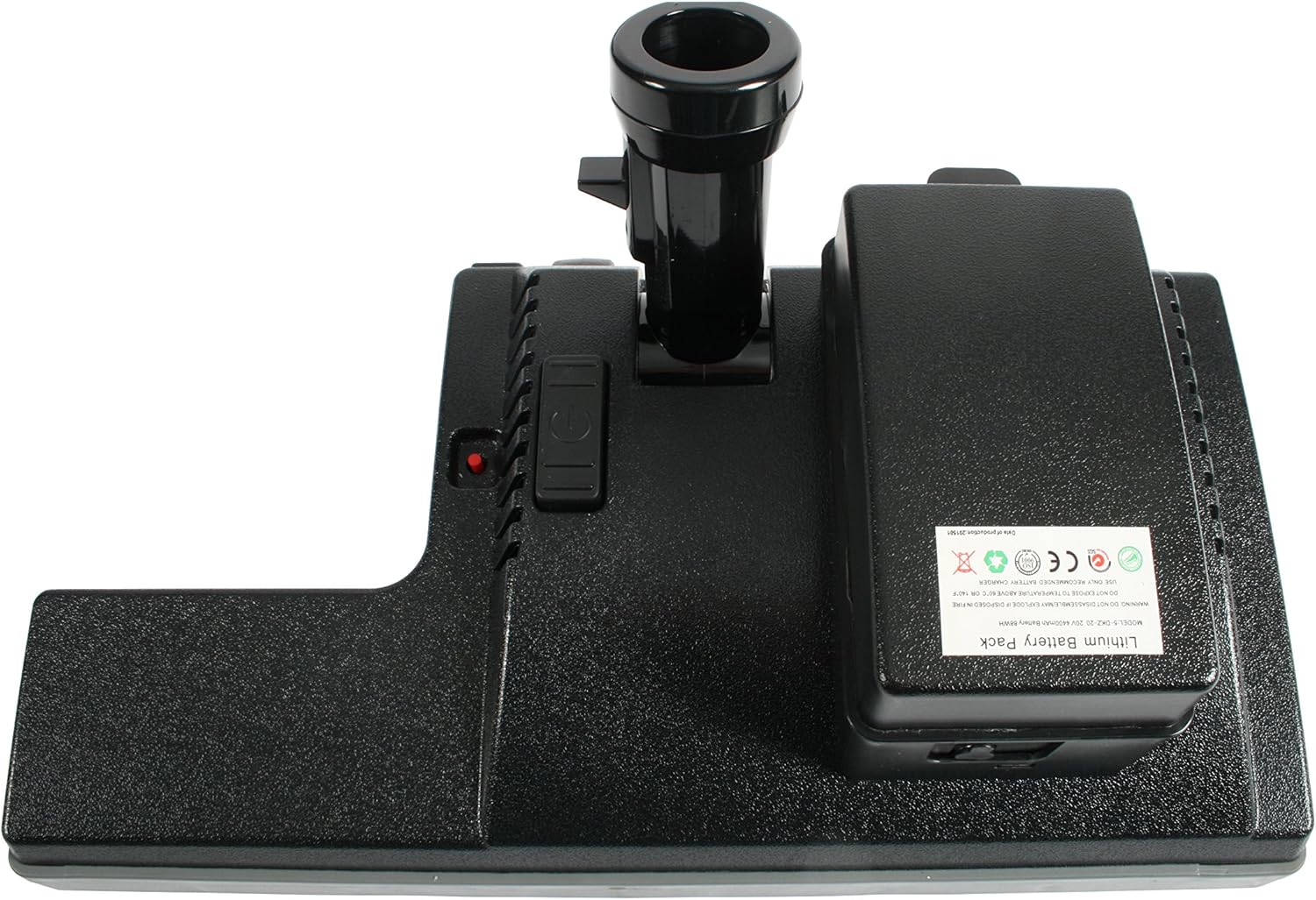The 39761 uses the latest in battery technology to provide a power nozzle solution for domestic and commercial vacuums without the need for expensive electric hoses or the use of extension cords to provide power. Once the battery is mounted to the top of the nozzle on off control is easy using the step on foot switch positioned on the top of the nozzle. The 14” width full size power nozzle provides all the cleaning performance of traditional vacuums and the carpet grooming necessary to clean deep down dirt and debris improving carpet life and maintaining carpet appearance. Adding a powered nozzle to battery vacuums, traditional canisters lacking a power nozzle, and central vacuum using static tools or air turbines will dramatically increase cleaning results and surface grooming. The winged design of the 39761 provides a low profile and access in and around furnishings, chairs, and tight spaces. The winged side of the nozzle brings the brush closer to nozzle edge and a deep channel permits generous airflow for superior edge cleaning. The 39761 quick release neck accepts standard 1.25” (32mm) friction wands with a spring release connection for a positive hold and easy release. The 39761 is compatible with major brands of commercial back pack and canister vacuums including ProTeam, Mosquito, NSS, Tenant, Power Flight, Tornado, Pneumatic, Sandia, Bissell, Sanitaire, Hoover, and Nilfisk,. The battery nozzle is compatible with major brands of central vacuum in both domestic and commercial use using low voltage or standard air hose including Beam, Eureka, Electrolux, Vacuflo, Dirt Devil, Canavac, Cyclovac, Vacumaid, Imperium, M&S, Husky, ProLux, and Nutone.