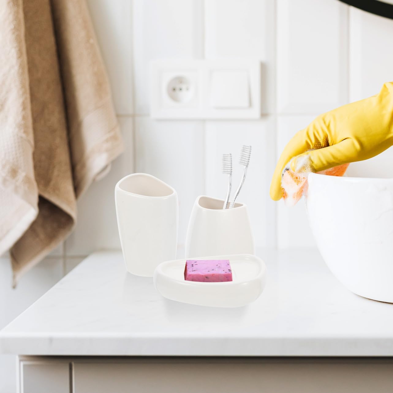 Package List 1 x Soap Dispenser 1 x Toothbrush Holder 2 x Cups 1 x Soap Box Features -Material: Ceramic Bathroom Washing Accessory -Color: White Toothbrush Cup -Size: About 17.00X12.00X12.00cm/6.68X4.72X4.72in Lotion Sub Bottle - This set of wash cup is wonderful, elegant bathroom accessories organizer with great Soap Tray. - Small size and portable, convenient to carry and store. Simple and classic appearance Bathroom Supplies. - Considerate make sure clean and neat Gargle Cup. - Fine workmanship, smooth polishing, multi-purpose, can be used as a wash cup Bathroom Supply. - This set includes two cups, one soap dispenser, one toothbrush holder and a soap tray, convenient to use Container.Goods InformationToothbrush Cup Simple structure and smooth surface.Toothbrush Storage Cup Specially designed for the home use.Gargle Cup This item is a set of bathroom personal washing accessories, which is made of for use, not easy to deform or break.Soap Tray Fine workmanship and beautiful appearance, can ensure the popularity