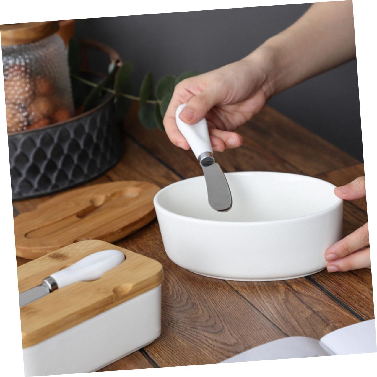 Package Include 1 x Cutter 1 1 x Lid Characteristics -Product Info:Butter knife ceramic disc set -Size:17.40X12.00X7.40cm/6.84X4.72X2.91in -Color:Multi -Material:Ceramic, - This practical butter pan with a lid can keep the butter fresh, spreadable and delicious for longer ceramic butter jar. - This classic design is elegant enough for any dinner table and is suitable for everyday use covered butter dish. - workmanship and good materials a and perfect details. - Our Butter Storage Box is made of fine material, with smooth edges, thick and . - The lid helps to hold the butter stick or cheese fresh in the refrigerator, without absorbing the odor of other foods with lid.Goods Informationairtight butter dish With decor, add luxury and chic atmosphere.rectangle butter keeper This item a Butter Box with Slicer which is manufactured with material, classic and delicate.butter dish with handle on lid Selection of good material, safe use, stylish and creative.butter container Great for household