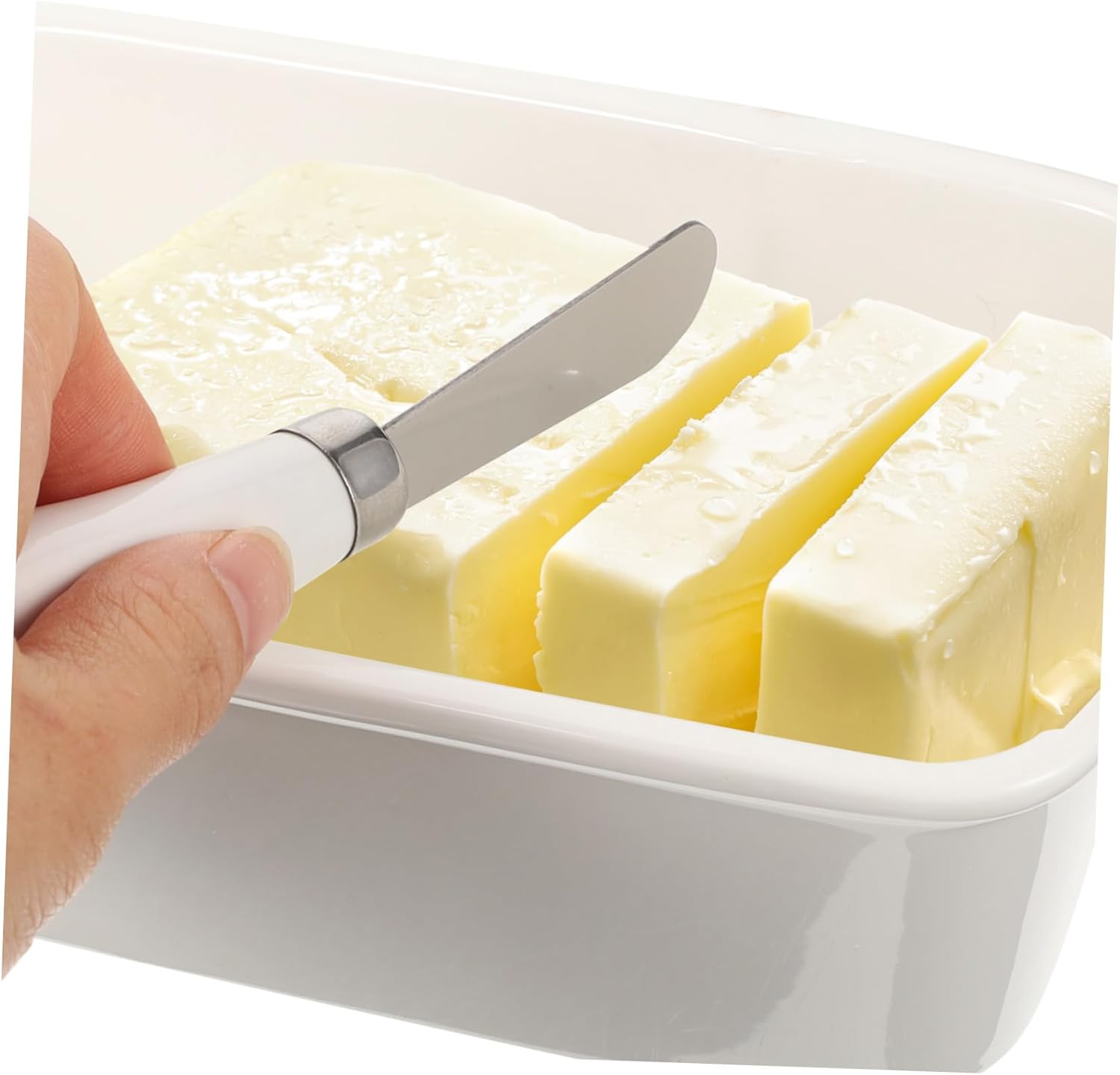 Package Include 1 x Lidded Butter Box 1 x Butter Cutter Features -Size:16.80X9.80X7.60cm/6.60X3.85X2.99in cheese container -Color:White cheese dish -Material:Stainless steel, plastic, silicone, ceramic, storage box - The lid helps to keep the butter stick or margarine fresh in the freezer, without mixing the odor of other foods home tableware. - Save your time and keep the butter fresh, convenient for home bakery and cooking butter storage box. - Simple appearance and good workmanship its popularity and practicality, and it is loved by buyers kitchen cutlery. - Manufactured with , and to use The butter container with lid is suitable for most brands of butter butter starter pack. - Our Butter Case is used for holding butter, and can also be put in the freezer for next cooking prepare butter dish.Goods Descriptionbutter crisper A Butter Box with Slicer which is manufactured with material, classic and delicate.kitchen cutlery With decor, add luxury and chic atmosphere.butter case with lid Selection of good material, use, stylish and creative.butter dish with lid Great for household