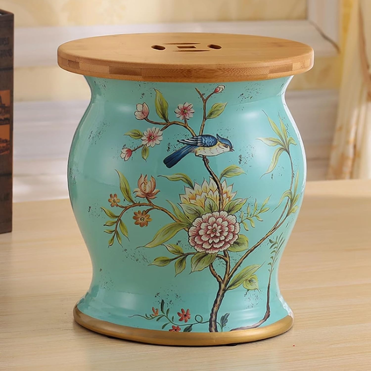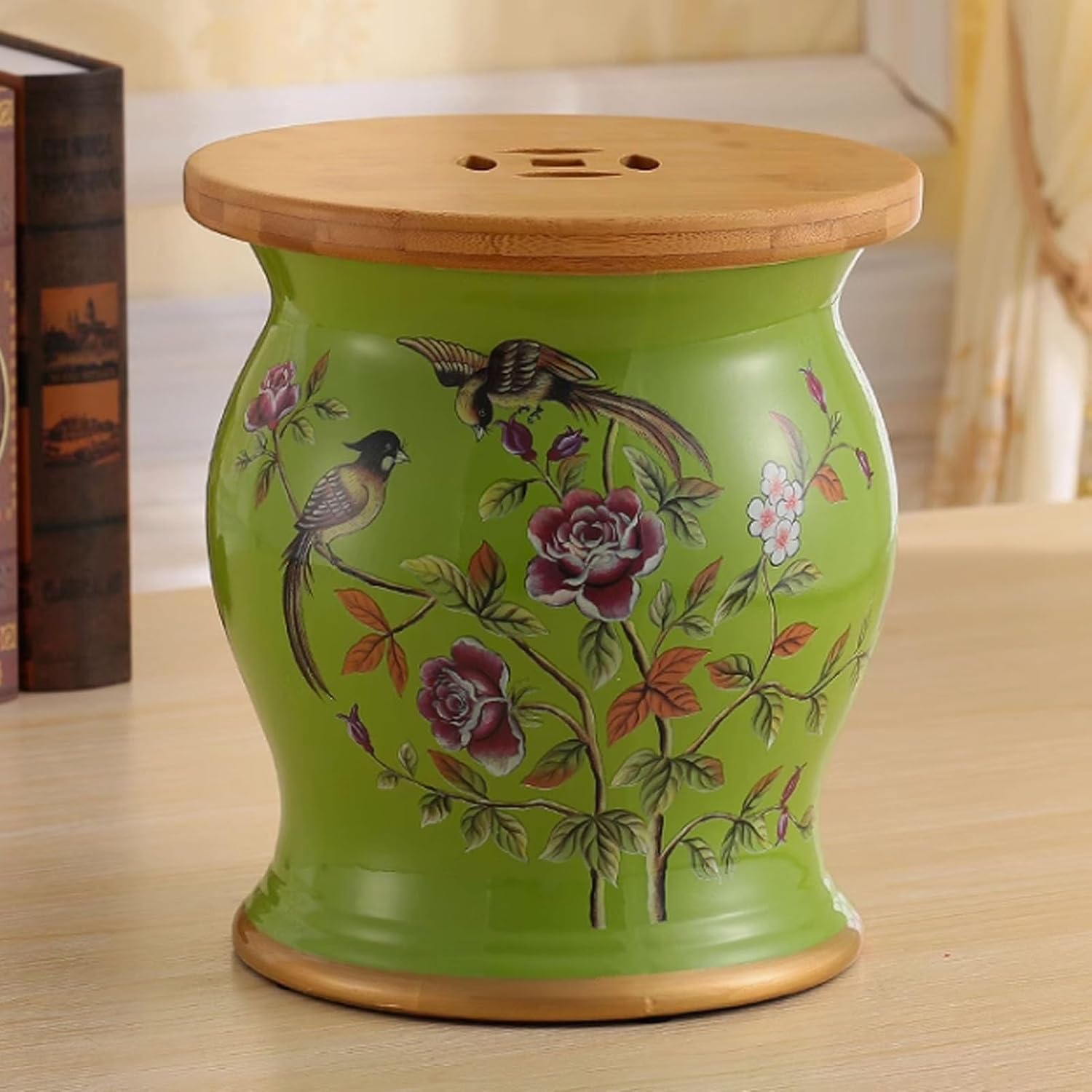 The GUAWJRZDP ceramic painted drum stool is made of high-quality wooden cushions. When the cushions are opened, household items can be stored and organized, making the home clean and tidy.The luxurious and high-end handmade gold painting increases the luxurious texture of the drum stool and highlights the luxurious style. The shape inherits the Chinese classical design, and the shape is simple and rustic.● Product parameters:Product Name: Chinoiserie Ceramic Drum Garden Stool/Ottoman/Ceramic Drum Stool PierMaterial: Ceramic+woodProduct color: Beige , Light Blue C , Cyan , Grass Green, Dark Green , Pink , Yellow , Orange , Silver, Dark BlueSize: 27cm/10.6in (diameter), 31cm/12.2in (height)● Precautions:1. Due to manual measurement, there may be an error of 1-3cm, please understand.2. Due to factors such as shooting light and different display screens, there may be a certain color difference, please refer to the actual object.