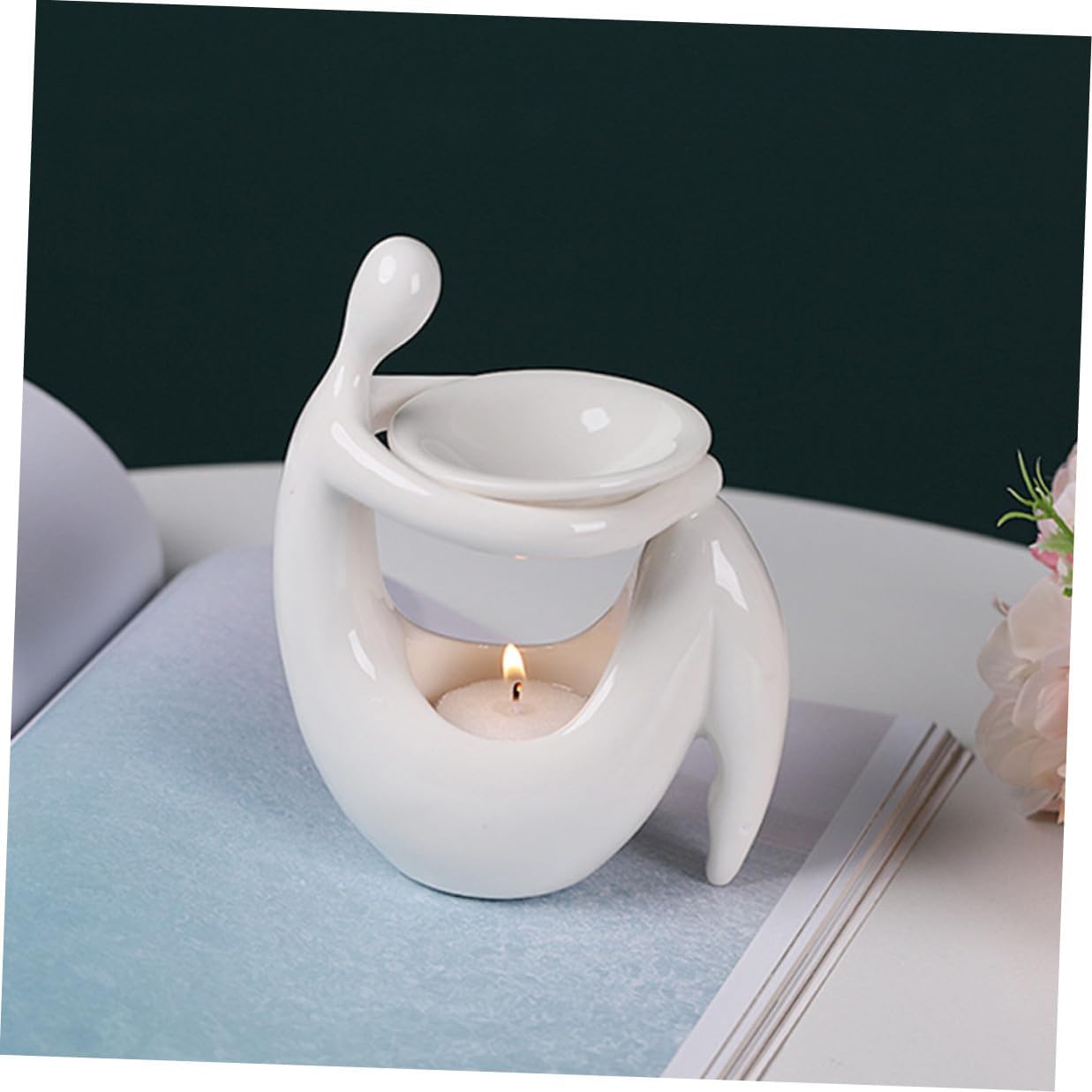 Ceramic Essential Oil Burner Incense Holder Small Desktop Censer Figurine Shape Aromatherapy Scented Candle Lamp for Home Office Decoration
