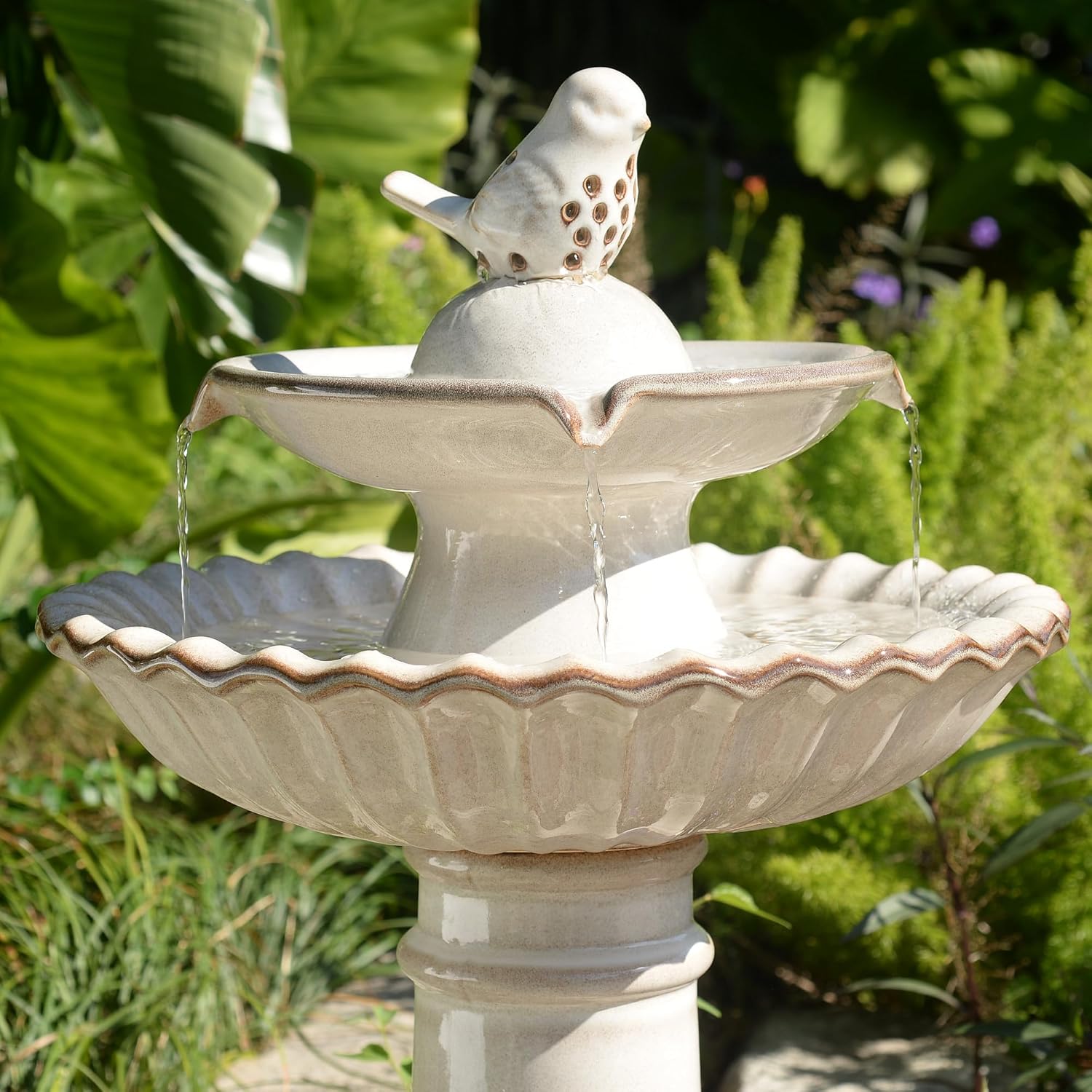 Introducing our Ceramic Fountain in classic ivory, exuding timeless elegance without the distraction of lights. Crafted with precision from high-quality ceramic, this fountain features a submersible pump (Model # MZ20250DA) for a gentle water flow, creating a serene atmosphere in your outdoor space. Enjoy the calming effects of flowing water without the added visual stimulation, making it a perfect addition to gardens, patios, or any outdoor setting.