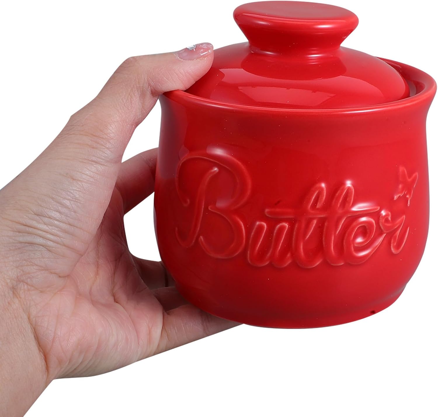 Package Include 1 x butter jar Characteristics -Appearance: the elegant ceramic design of this butter dish adds a touch of charm to your kitchen decor, making it a beautiful and practical addition to your home butter crock container. -Size:10.50X10.50X9.00cm/4.13X4.13X3.54in -Product Info:Butter can -Volume: the large capacity of this butter dish allows you to store several sticks of butter, making it ideal for family use and reducing the frequency of purchases ceramic butter dish. -Material:Ceramics -Preservation: featuring a secure sealing lid, this butter dish protects your butter from spoilage, prolonging its freshness and usability dish. -Functionality: this multifunctional dish is great for storing butter, cheese, margarine, and other spreads, providing versatility and convenience in your kitchen traditional butter dish. - Color: Red -Quality: crafted from ceramic, this butter dish shields your butter from air and light, ensuring it stays fresh and delicious for extended periods butterdose mit deckel.Goods Informationceramic butter keeper The decorative butter crock is a must-have for any kitchen.butterdose hoch fassbutter The stylish design makes it a great addition to your countertop, offering both practicality and a touch of elegance to your kitchen space.runder butterdose Its ceramic construction that your butter stays fresh, while the lid provides added protection