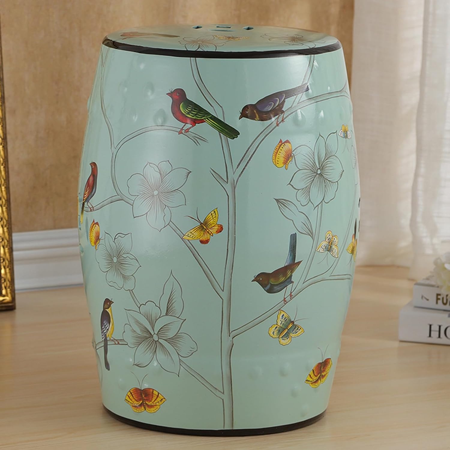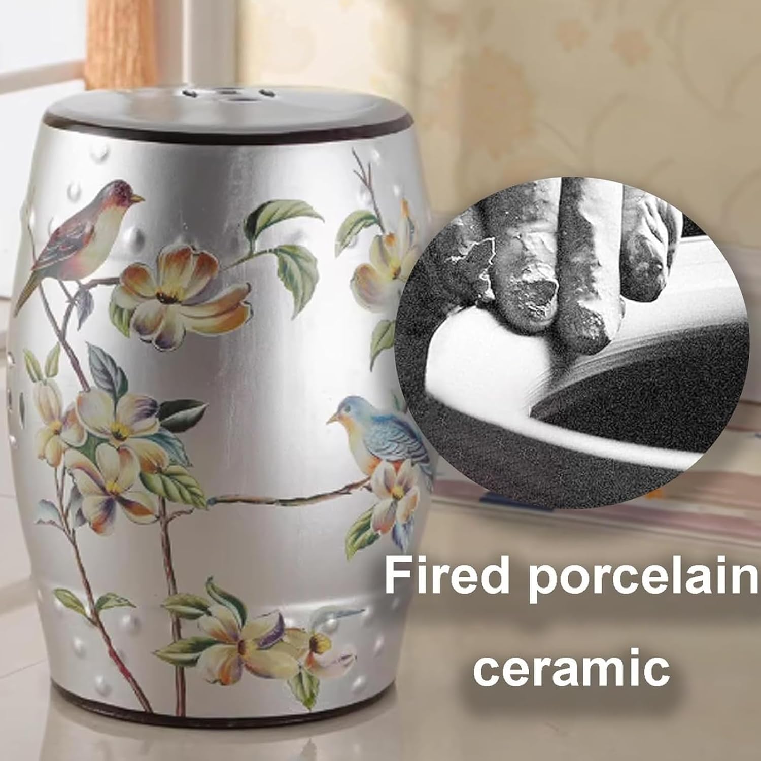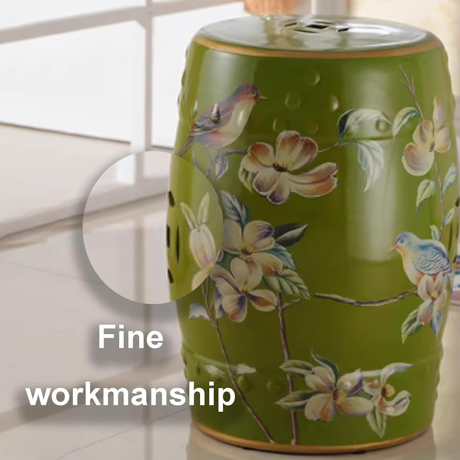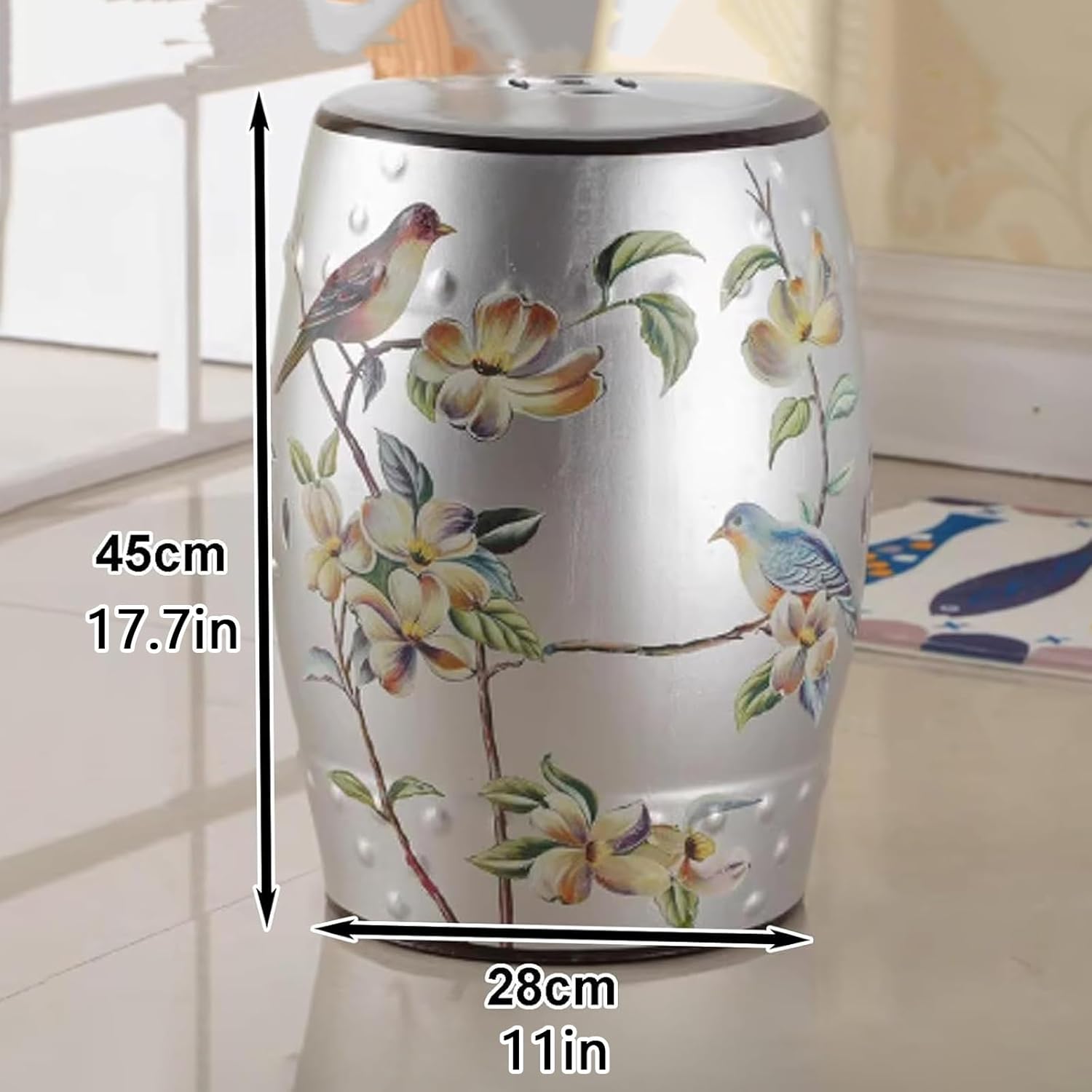 YQMHEZ Chinese style flower and bird ceramic drum stool, with a classical shape and exquisite flower and bird decoration, cleverly combines ancient charm with new style. After secondary high-temperature firing, it can easily cope with indoor and outdoor dry and wet environments; it can be used as a dressing stool, side table, footstool, beverage plant stand, suitable for various scenes, highly compatible with the seat armrests, ceramic glaze is wear-resistant and scratch-resistant, not easy to fade, and the unique charm of home furnishings that are both classical and practicalSpecifications:Name: Ceramic Decorative Garden Stool/Glazed Decorative Stool/decorative garden stools outdoorMaterial: CeramicSize: 28 cm/11 inches in diameter, 45 cm/17.7inches in heightPackage:Ceramic Stool x 1Package Includes:1 × Ceramic Garden Stool (fully assembled)Important Notes: Slight size variations (1-3cm) possible due to manual production Color tones may vary slightly from screen images