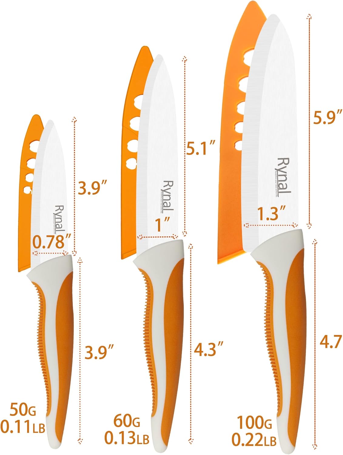 | Included Components | Custom-fit Protective Sheath, Decent Gift Box, Rynal Ceramic Chef Knife 6 Inch, Rynal Ceramic Paring Knife 4 Inch, Rynal Ceramic Utility Knife 5 Inch |
