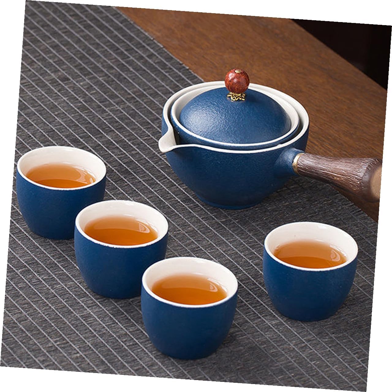 Package List 1 x Teapot 4 x Cups 1 x Bag 1 Features - Teacup capacity: 55ml teapots ceramic - Size(Teacup):6.80X3.8cm/2.67X1.50in - Size(Teapot):17.00X11.00X6.00cm/6.68X4.32X2.36in - Color: Blue - Teapot capacity: 160ml teapots -Product Info:Side-hand teapot - Size(Tea Plate):19.30X19.30X2.00cm/7.58X7.58X0.79in - Material: Ceramic, wood - Just the perfect size for that person who wants to have a few cups of tea without having to get up and make cup after cup. - This decorative tea kettle has a smooth surface, which is easy for you to maintain and clean tea pots. - The material is safe and light, which is wear resistance and practical for the lasting time use. - The structure is scientific, with a handle, which is convenient for you to better grasp and dump ceramic teapot with infuser. - This tea pot designed with 360 degree rotating design, which can give you a professional tea brewing experience Chinese Style Home Tea Pot.Goods Informationceramic tea pot Whether there is wedding, housewarming, festival, it can be the for friends and family, especially for people who like tea.ceramic teapot The vintage tea ware is suitable for brewing blooming tea and loose leaf tea