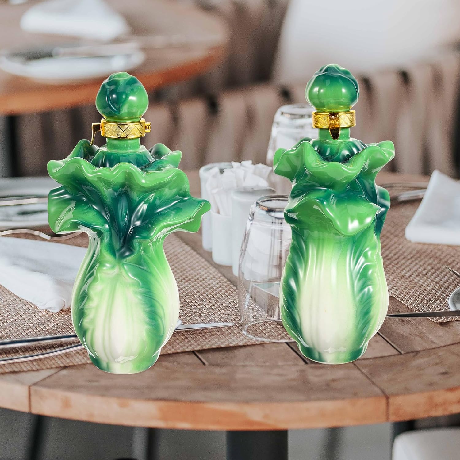 Package List 1 x liquor container Features -Product Info:Ceramic wine bottle -Size:27.50X15.00X11.00cm/10.81X5.89X4.32in -Capacity:500g Good Luck Porcelain Bottle -Material:Ceramic -Color:As Shown - The color is not easy to fading, finely polished, and feels comfortable, and practical for use. - Stable display, wear-resistant and . As home decoration, it can create a unique atmosphere airtight glass bottle. - Unique and eye-catching design of this liquor container adds a touch of sophistication to any room. little bottles with lids - The craftsmanship is fine, the wine bottle edges are smooth, you can feel comfortable when you use kitchen decorative bottles. - Can be used for both decorative and functional purposes. Makes a great addition to any collection. brewing bottleGoods InformationLucky Cabbage Shaped Bottle Delicate workmanship, decorative and useful, creative and decorative Chinese cabbage shaped design, not easy to break, and practical, convenient and easy to use.ceramic vine bottle The empty liquor container is made of materials.porcelain storage jars Used to store and hold liquor for home