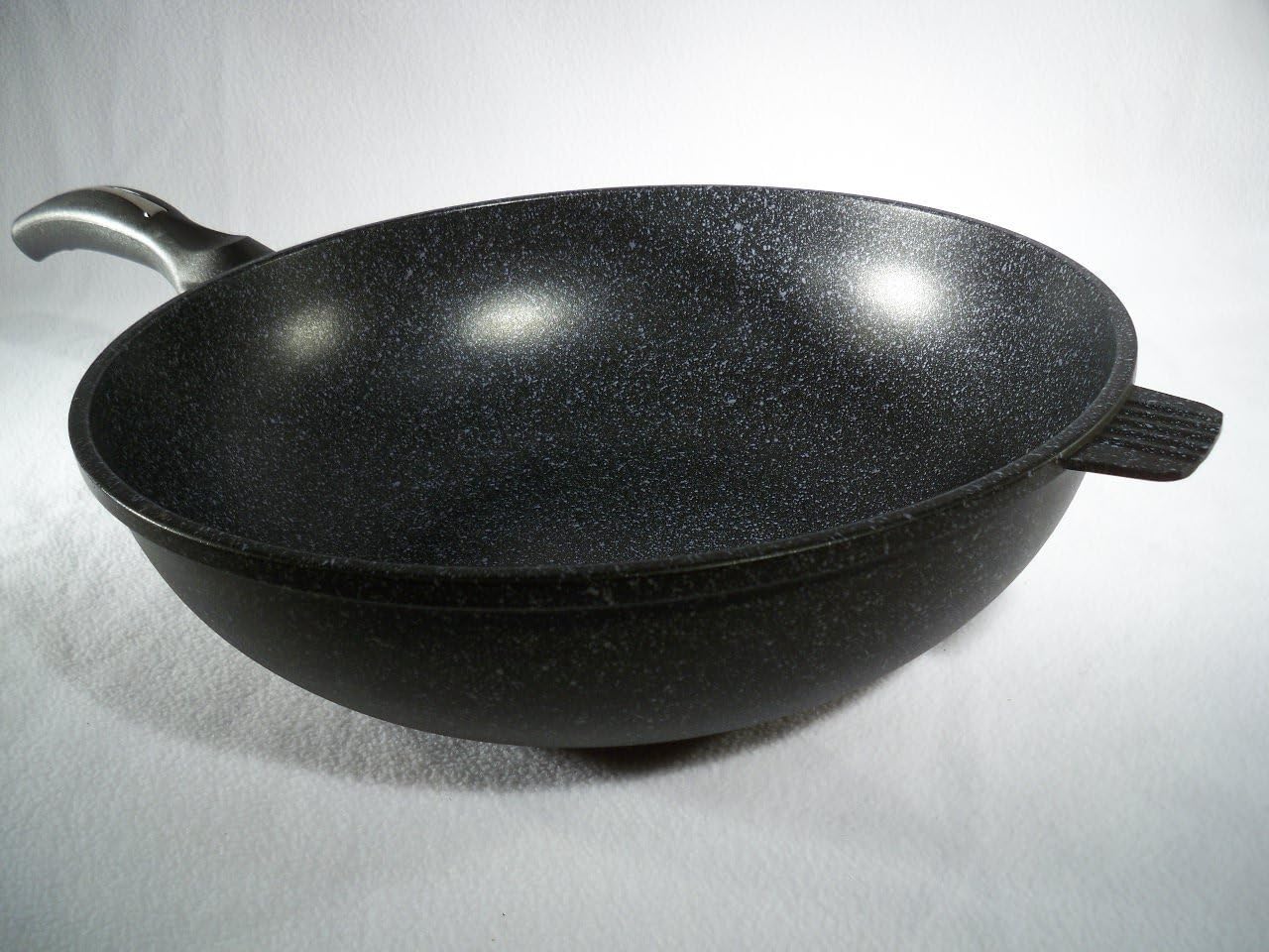 This Wok is truly a revolutionary breakthrough in non-stick cookware. The stone-like marble coating not only makes this wok as tough as stone, enabling it to withstand as much as 10X more abrasion as a standard teflon coated cookware; this special marble coating also makes this wok totally non-stick and non-scorching. Absolutely no oil needed to fry/grill your favorite food. And cleaning, you'll be amazed at how easy it is to clean this wok...just a dash of dish soap and a soft pad, absolutely no scrubbing with powder abrasives, hard pads etc. Plus with the marble coating on both inside and outside, your wok will continue to look like its new forever, even from the outside.