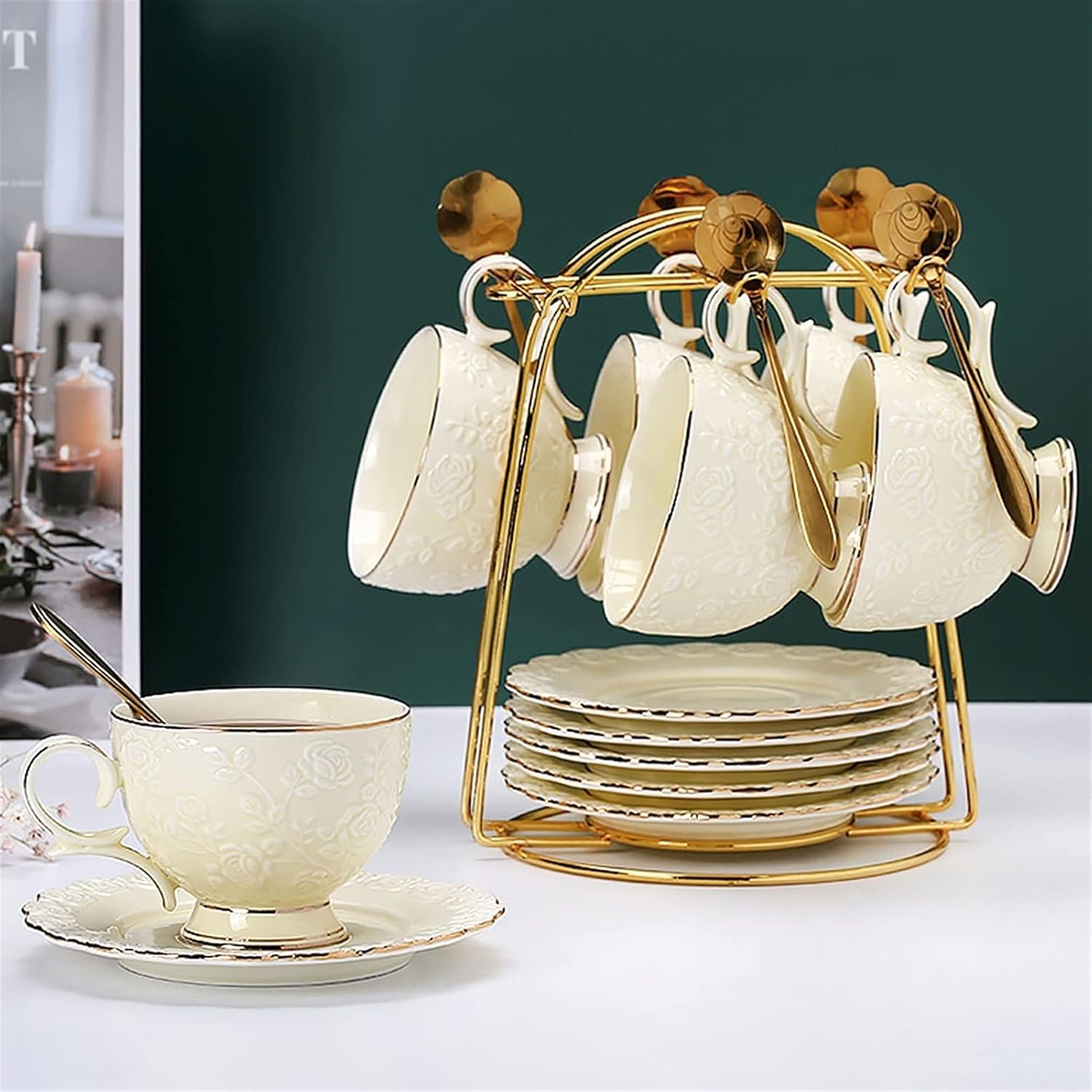 Product name: coffee cup and saucer (6 piece set)Product material: ceramicCup capacity: 170 mlProduct size: cup-shaped 3.3x 2.6 (inches), flat plate 5.5 inches, cup holder 5.9×8.6 inchesApplicable places: offices, schools, homes, coffee shops, etc.prevention:1. Before buying, please check the size and color.2. The cups, saucers, spoons and cup holders contained in this product shall not exceed this product.3. Please note that due to different monitors, there may be slight color difference, please understand.4. Due to manual measurement error, please refer to the actual product, thank you.5. If you find any problems with our products, please contact us via email, we will solve these problems as soon as possible.6. Welcome your sharing and feedback, so that we can provide you with better products and services.They're not only great for daily use but also an ideal gift for housewarmings, wedding, birthdays, and anniversaries.