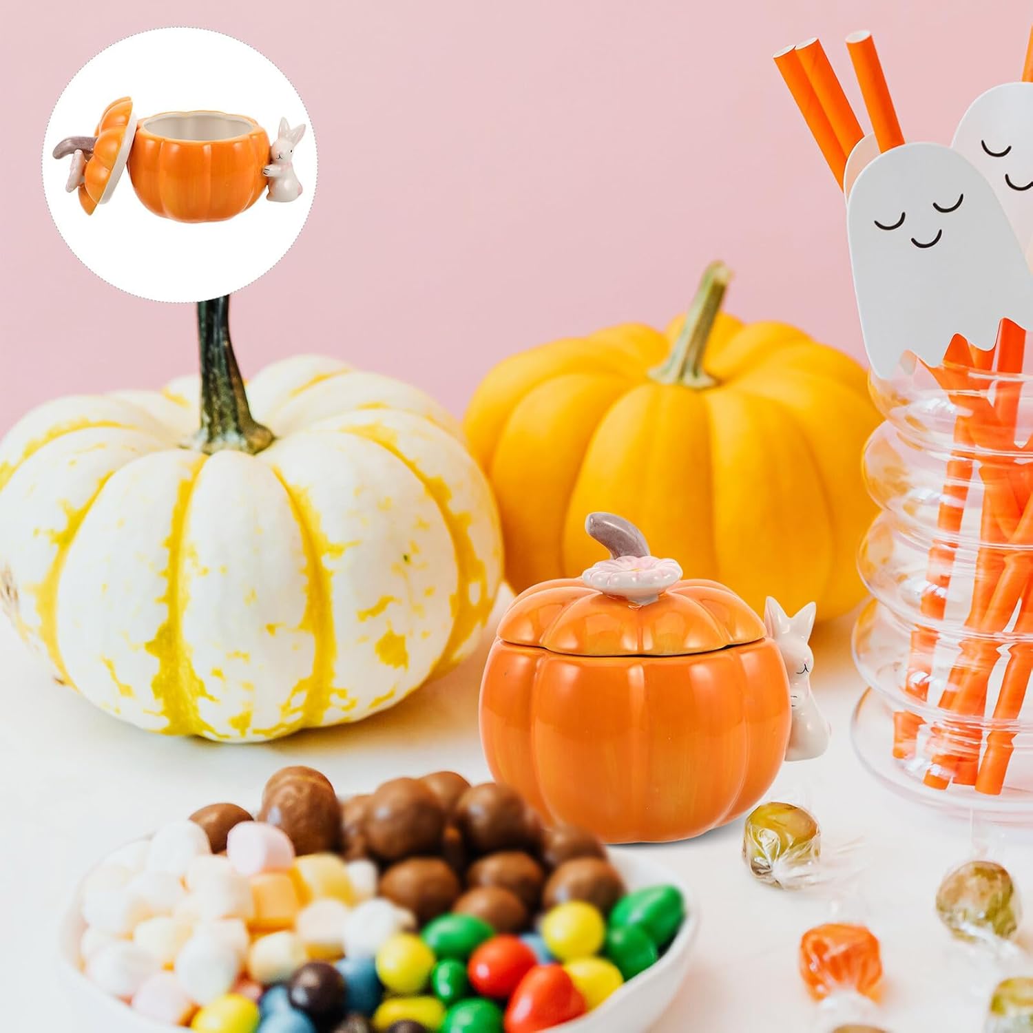 Package List 1 x ceramic pumpkin jar Features -Easy maintenance: this pumpkin jar with lid is designed for long time use, requiring minimal upkeep and making it a practical, decorative canister for any household ceramic decorative jars -Easy storage: organize jewelry, small accessories, or seasonal candies efficiently using this ceramic decorative jar, acting as both a jewelry box decorative and a treats container in your home ceramic figurines -Color:Yellow -Material:Ceramic -Size:17.50X17.00X15.00cm/6.88X6.68X5.89in -Product Info: Ceramic Pumpkin Jar -Decorative design: the pumpkin storage jar, making it an excellent kitchen organization jar or playful pumpkin shape candy jar on desks and shelves pumpkin cookie jar -Eye-catching pumpkin shape: with its pumpkin design, this ceramic pumpkin candy storage jar becomes a unique centerpiece, adding playful elegance to your fall festive decor or holiday candy jar presentations pumpkin snack container -Sealed for freshness: the solid ceramic sealed jar lid keeps food, treats, or trinkets fresh and secure, doubling as a ceramic food jar or kitchen canister pumpkin snack holderGoods Descriptionceramic sealed jar This fall festive decor piece serves as both a jewelry decorative box and pumpkin snack holder, integrating ceramic tableware storage jar utility with autumn pumpkin figurine style for easy organization and delightful presentation of treats.porcelain storage jar Bring seasonal flair to your home or kitchen with a pumpkin canister featuring ceramic craft