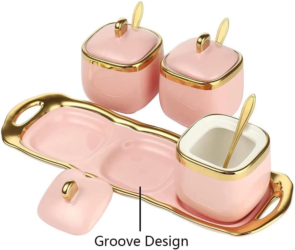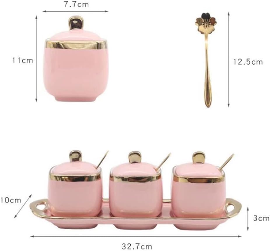 Features: 1. It is made of durable and beautiful ceramic material, which is dust-proof, insect-proof, moisture-proof and airtight. 2. Each jar is equipped with a detachable lid and spoon, and is equipped with a tray that is easy to move and fix. 3. The seasoning pot is made of ceramic material. After high temperature firing, the surface of the product is smoother and easy to clean. Specification: Product name: Spice jar. Material: Ceramic. Size: Tank: 11*7.7cm; Tray: 32.7*10*3cm. Remarks: 1. Due to manual measurement. There is a slight error, please refer to the actual product. 2. Due to the camera and lighting, the gray has chromatic aberration, please refer to the actual product. 3. Please wash and dry with water before adding spices. 4. Do not use steel balls and other hard objects to clean, so as not to scratch the glaze.