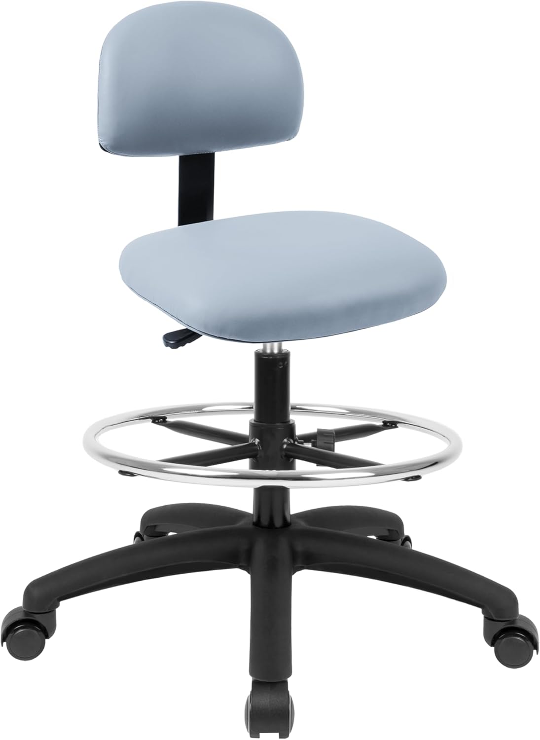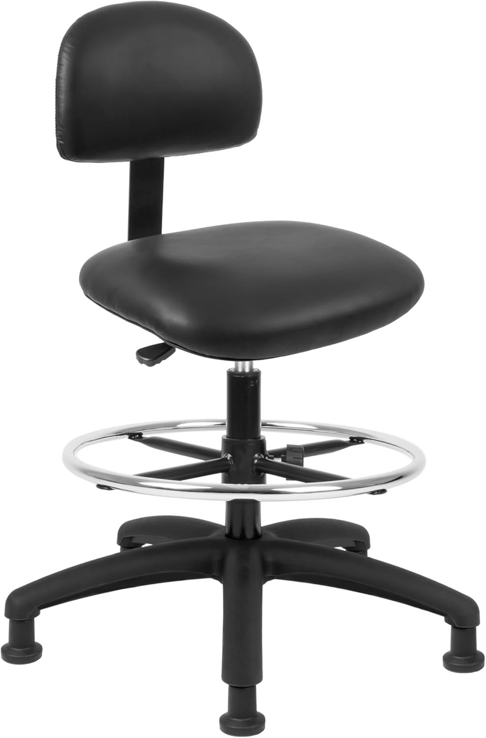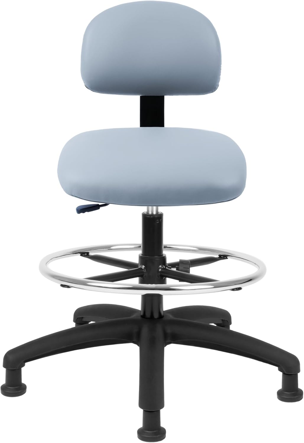 Chair Master laboratory task chairs were designed for comfort and durability. Made with high quality durable vinyl for ease of care and cleaning. Our chairs were designed for laboratory, healthcare, and clean room environments but also suitable for school, home, office or an industrial setting. With a large 17.5" square seat, comfort molded foam, and robust 25" base, the chair offers comfort, stability and support for extended periods of usage. The adjustable height back can accommodate a variety of positions to help support or brace correct seat posture. We offer different models with 5", 8" and 10" of seat height travel suitable for a variety of body types and working environments. All of our chairs meets or exceeds ANSI/BIFMA furniture standards, Clean-room class 10,000 and CAL117 fire standards. Tested for 450 lbs of seating capacity. Please Note: Caution for use by individuals over 350 pounds should note that the seat may compress an additional 1"-2". Warning if casters are used, the chairs can roll away when being boarded, causing harm to the individual.