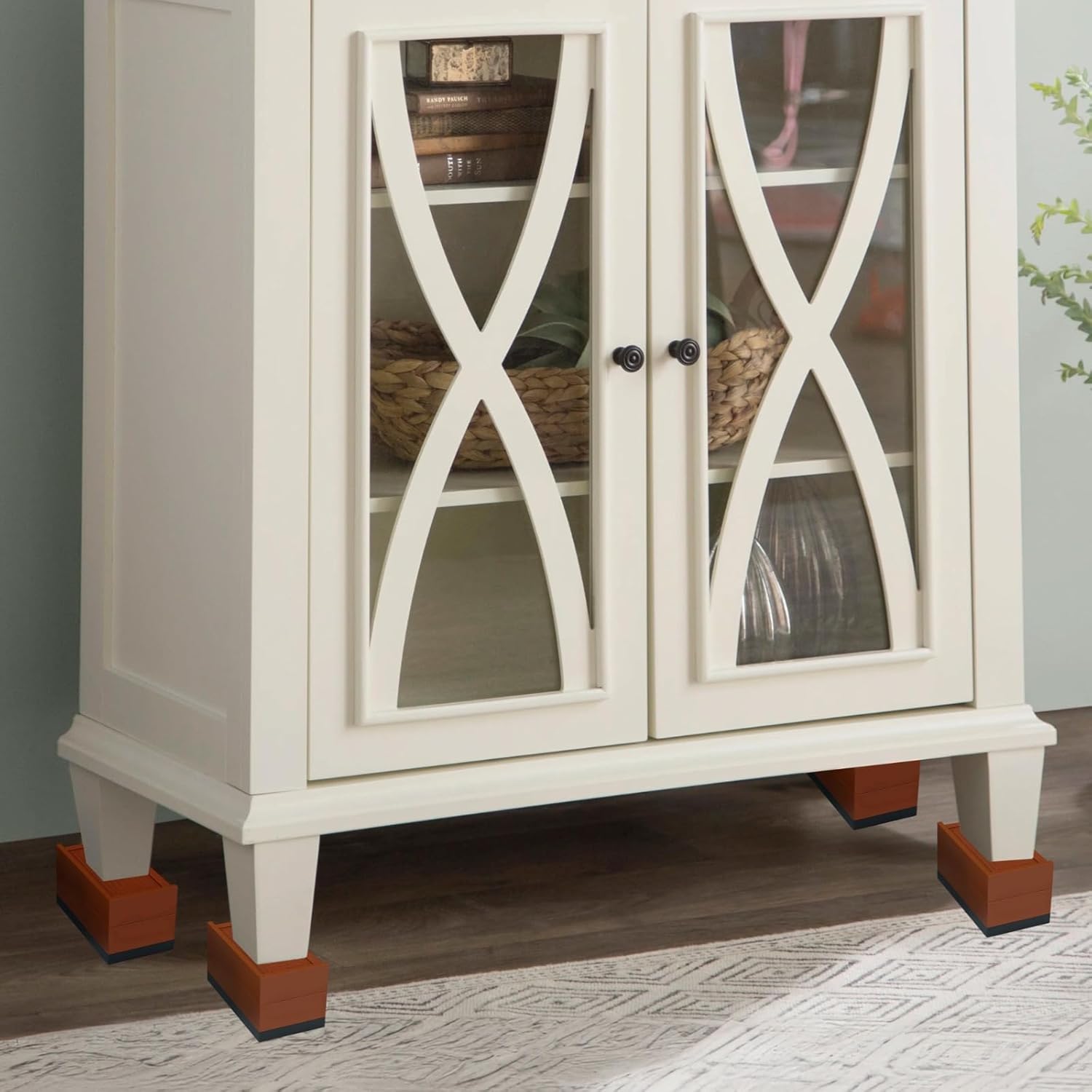 Color:brown Material:PP Product Size: 6.89x5.51x5.12 in / 17.5x14.0x13.0 cm Package Includes:bed risers for dorm x 4 Note: - Please refer to the measurement. Tiny measuring error is allowable in normal range. - There might be a little color difference due to the monitor, camera or other factors, please refer to the physical item.