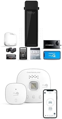 Bundle of CHAMBERLAIN RJO101MC Ultra-Quiet Wall Mounted with Battery Backup and LED Lighting Garage Door Opener, 36 pounds, Black + CHAMBERLAIN Smart Garage Control - Wireless Garage Hub and Sensor with Wifi & Bluetooth - Smartphone Controlled, myQ-G0401-ES, White