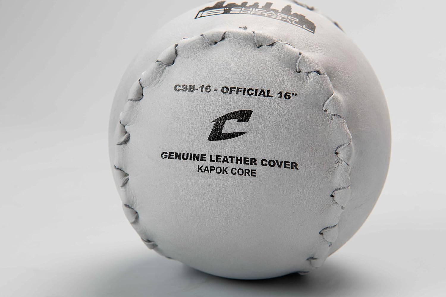 The CHAMPRO 16" Chicago Softball features a silhouette of the Chicago city skyline and is an excellent choice for 16-inch games or practice. Made with a cowhide leather cover with interlocking seams and a Kapok pressure-bonded core that softens up after repeated hits.