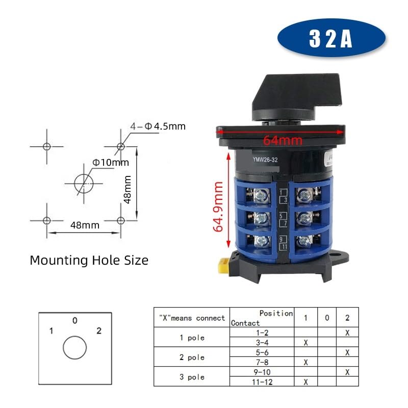 Magnetic SwitchesChangeover Cam Rotary Switch LW26-32A Two/Three Position 1-4 Poles Silver Contact Dual Power Control 1Pcs