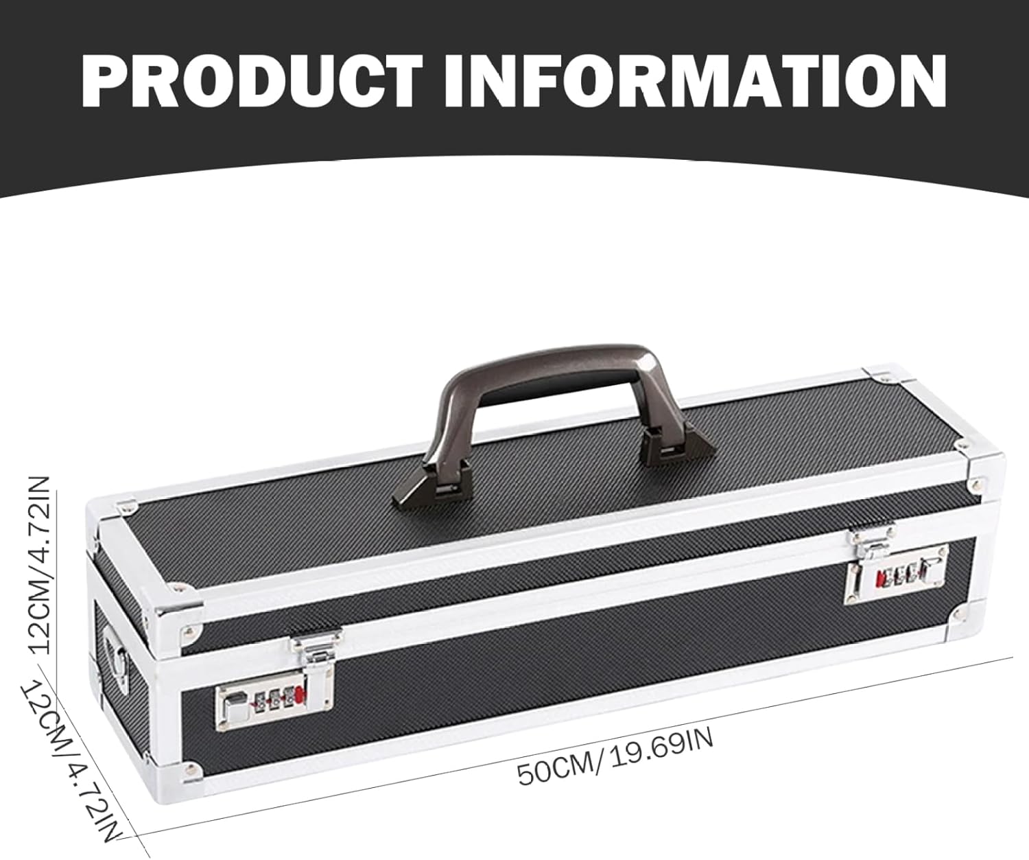Description: Secure and organize your prized knives with this and stylish aluminum knife storage case. Measuring 19.7x4.7x4.7 inches, it features dual combination locks for extra security and a portable design with a convenient handle and strap. Perfect for professionals or collectors, this case ensures that your knives are kept safe, organized, and easily accessible wherever you go. Features:. Chef Bags for Knives and Tools. -Color: As shown. -Material: MDF+Aluminium alloy. -Size: 50x12x12 cm/19.69x4.72x4.72 inch. Note: Manual measurement, please allow slight errors on size. The colors may exist slight difference due to different screens. Package Including 1 * Chef Bags for Knives and Tools