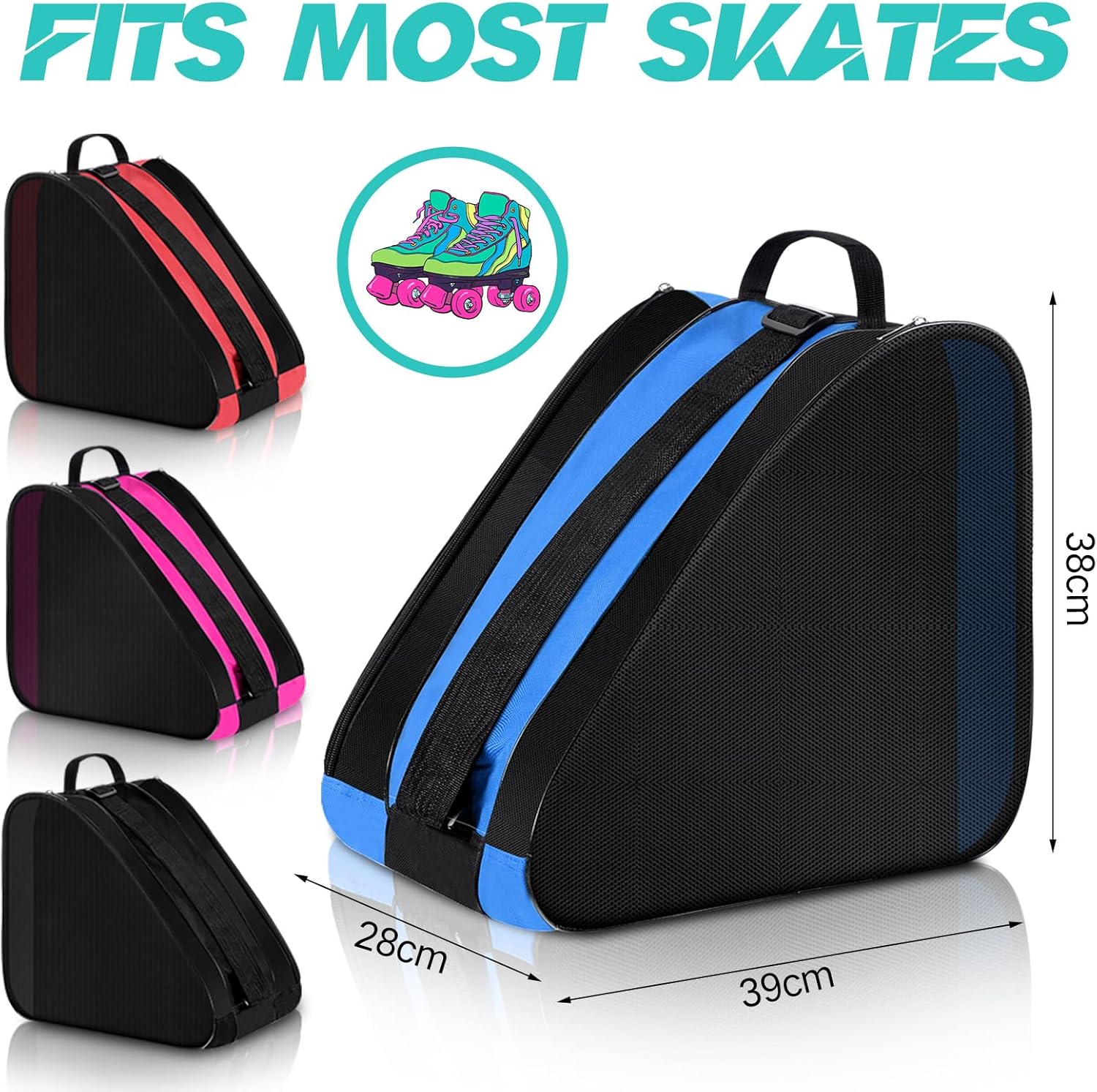 Features: Vibrant colors: Our hockey ice skate bags come in a variety of appealing colors including red, pink, blue, and black. This provides you with an element of personal choice, allowing the bag to reflect your style or coordinate with your existing skating equipment. Ideal gift for skating enthusiasts: Owing to its versatile attributes and impressive functionality, our ice skates bag serves as the ideal gift for skating enthusiasts. When for birthdays, achievements in skating, or special occasions, it will be a hit among recipients who can make effective use of it. Specifications: Material: oxford fabric Color: red, pink, blue, and black Size: about 15 x 15.4 x 7.9 inches/ 38 x 39 x 20 cm(H x L x W) Package includes: 4 x Roller hockey bags Notes: Manual measurement, please allow slight errors on size. The color may exist a slight difference due to different screen displays.