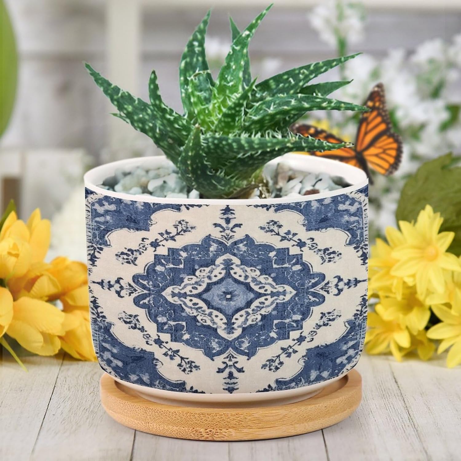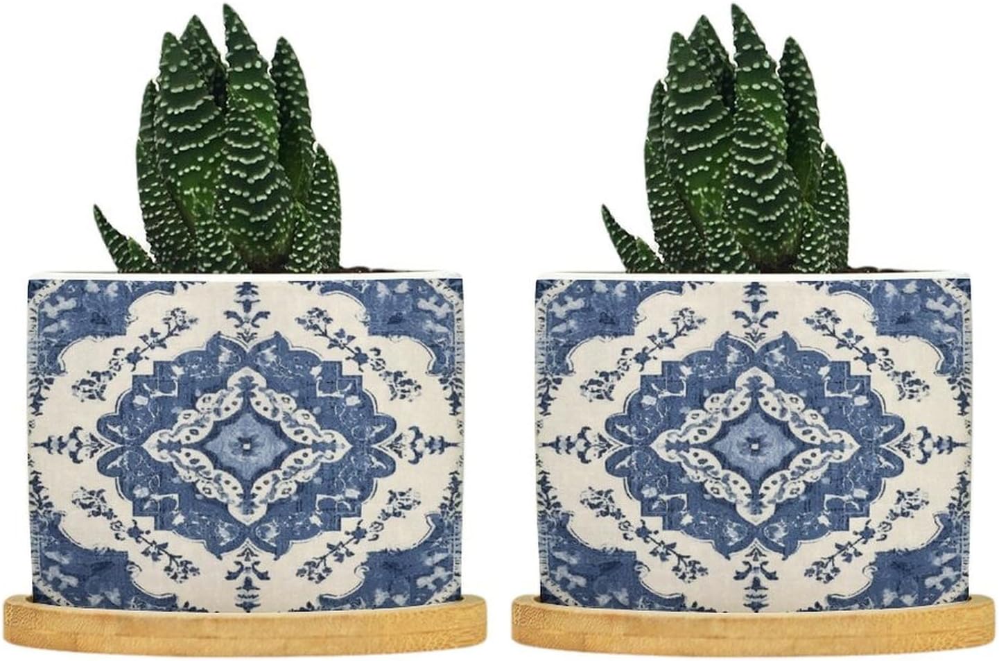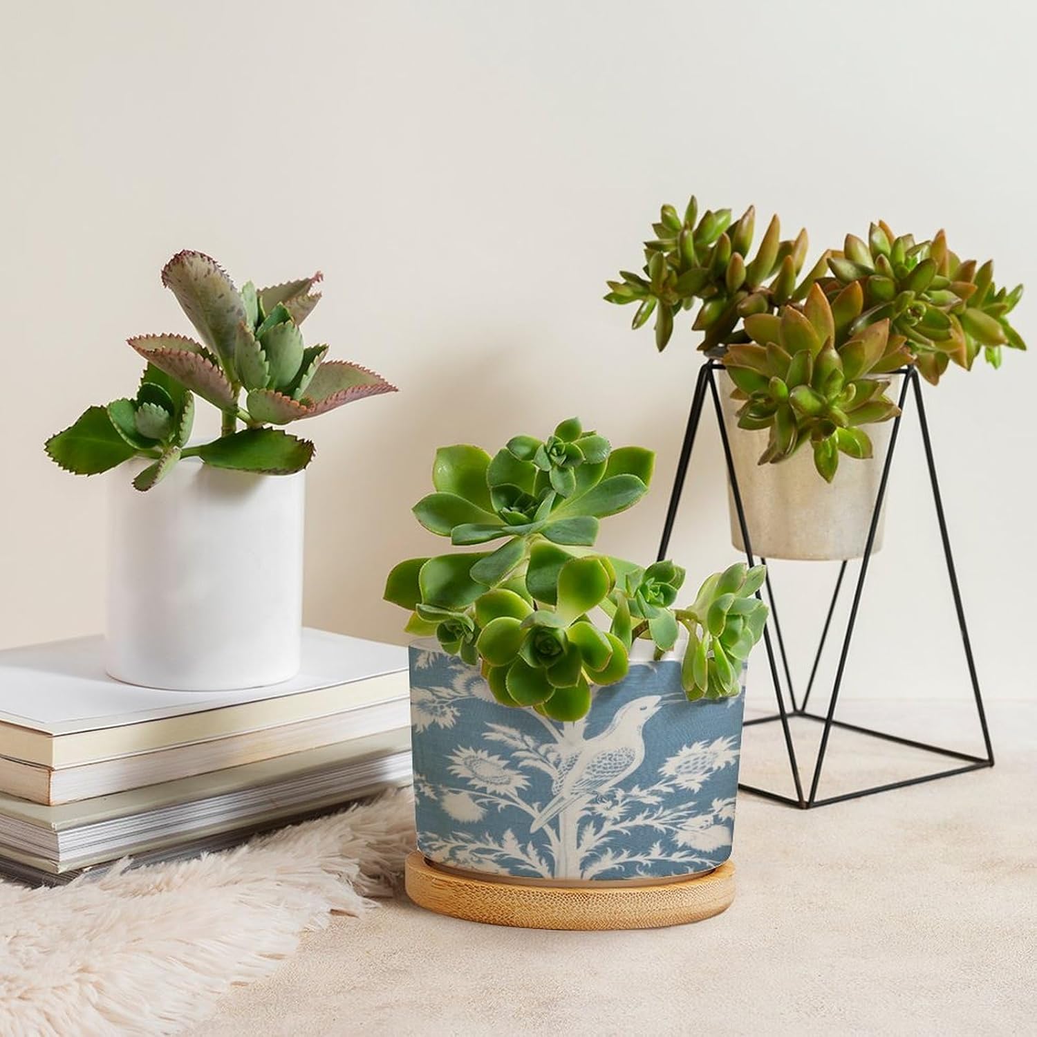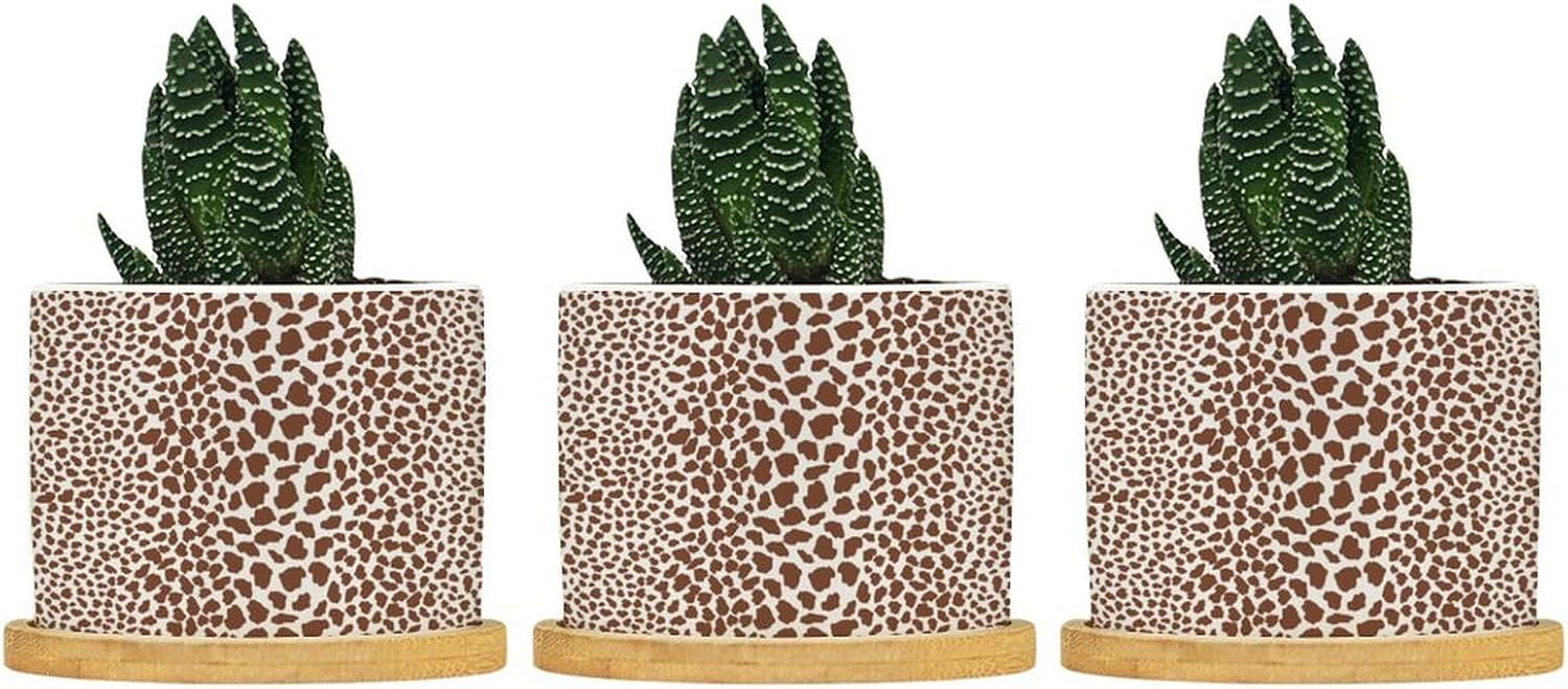 "Succulent Planter Set: Elegance Simple - These small, planters, with a convenience drainage hole, come with complementary draining trays crafted from natural bamboo. Considerate Design - The planters feature a drainage hole that guards against overwatering, thus aiding plant health. The bamboo tray is perfect for catching excess water without any floor drips. Enliven Your Space: These ideally sized planters add your windowsill or any other nooks with a touch of art, effortlessly bringing life to your rooms! Perfect Gifts: These adorable and portable pot make ideal presents for your family, friends, and all plant lovers. Please Note: We only sell planters. Plants are not included. There might be a slight different (0.1-0.2 inch) in size data due to various measurement way. Please refer to the practical product. The product's color might slightly different from the image due to light, monitor setting, and placement view. Please refer to the practical product."