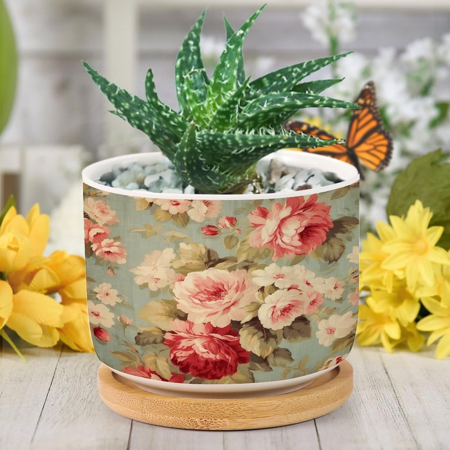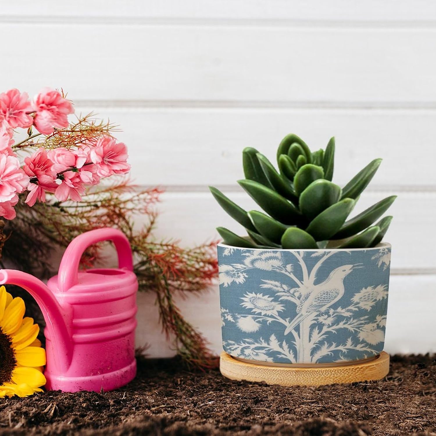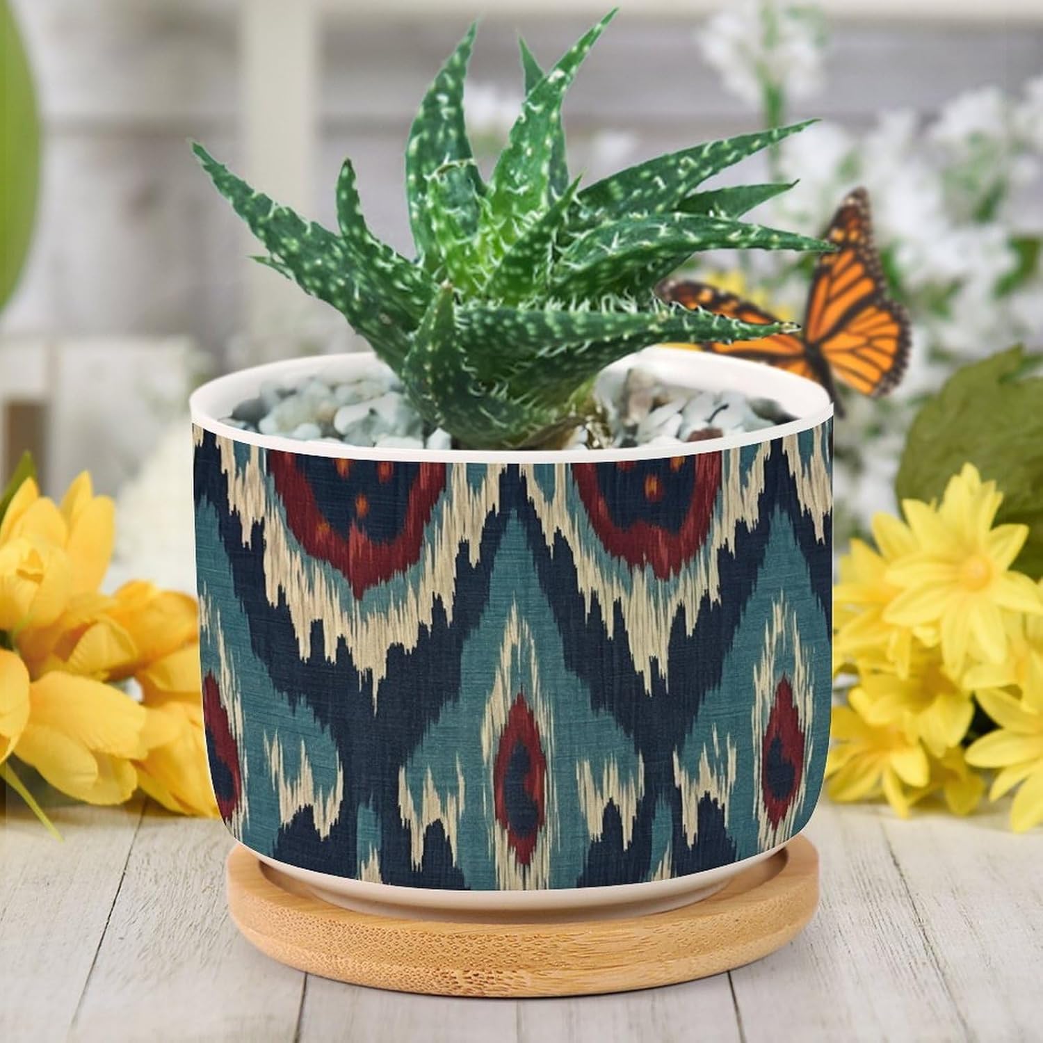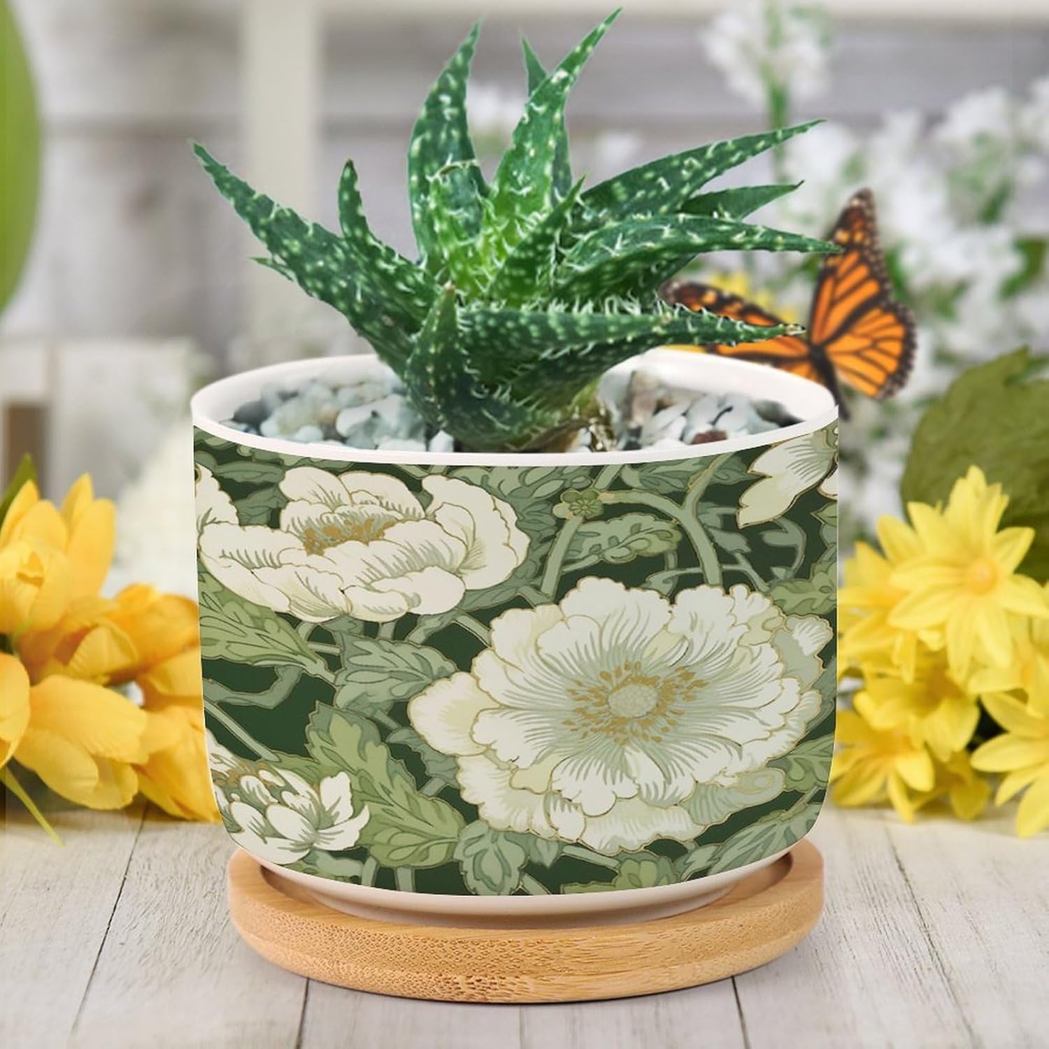 "Succulent Planter Set: Elegance Simple - These small, planters, with a convenience drainage hole, come with complementary draining trays crafted from natural bamboo. Considerate Design - The planters feature a drainage hole that guards against overwatering, thus aiding plant health. The bamboo tray is perfect for catching excess water without any floor drips. Enliven Your Space: These ideally sized planters add your windowsill or any other nooks with a touch of art, effortlessly bringing life to your rooms! Perfect Gifts: These adorable and portable pot make ideal presents for your family, friends, and all plant lovers. Please Note: We only sell planters. Plants are not included. There might be a slight different (0.1-0.2 inch) in size data due to various measurement way. Please refer to the practical product. The product's color might slightly different from the image due to light, monitor setting, and placement view. Please refer to the practical product."
