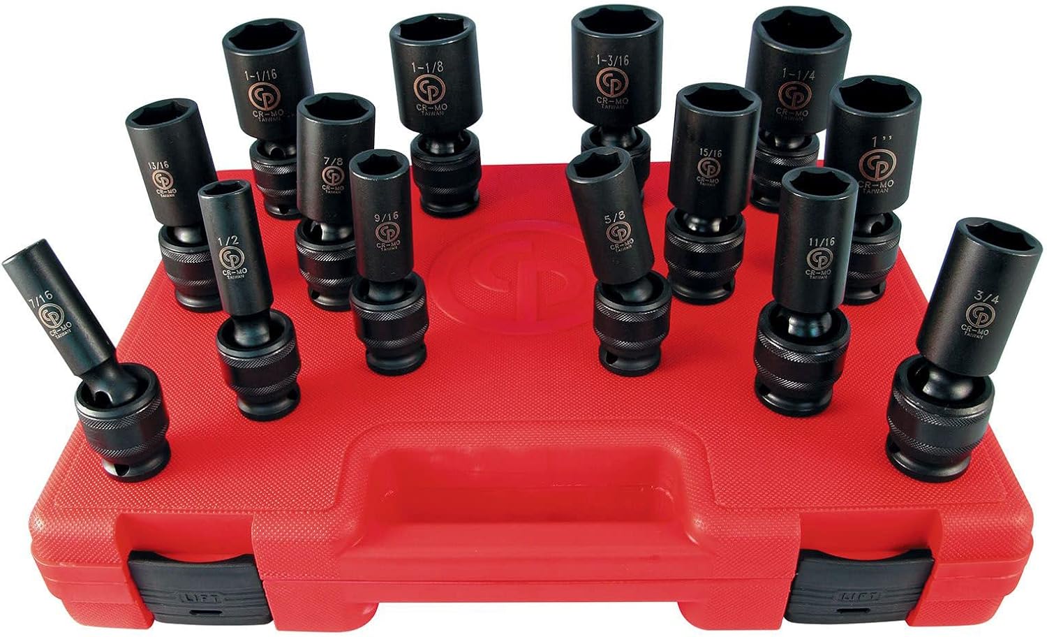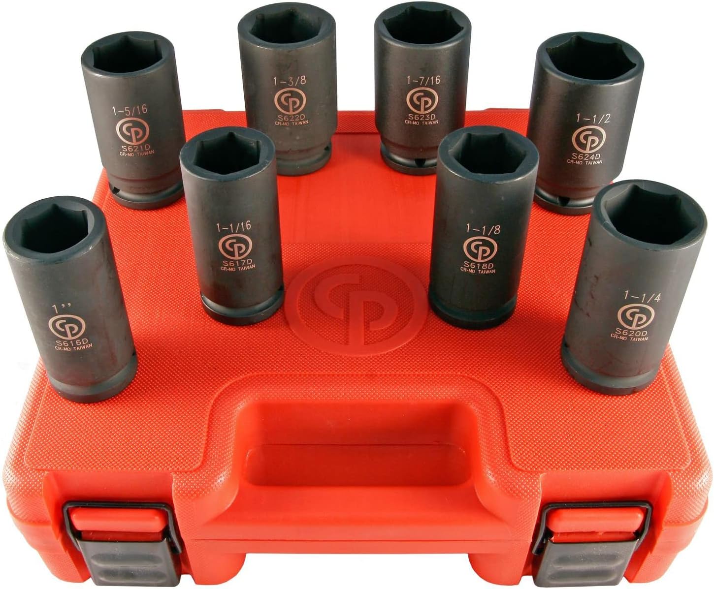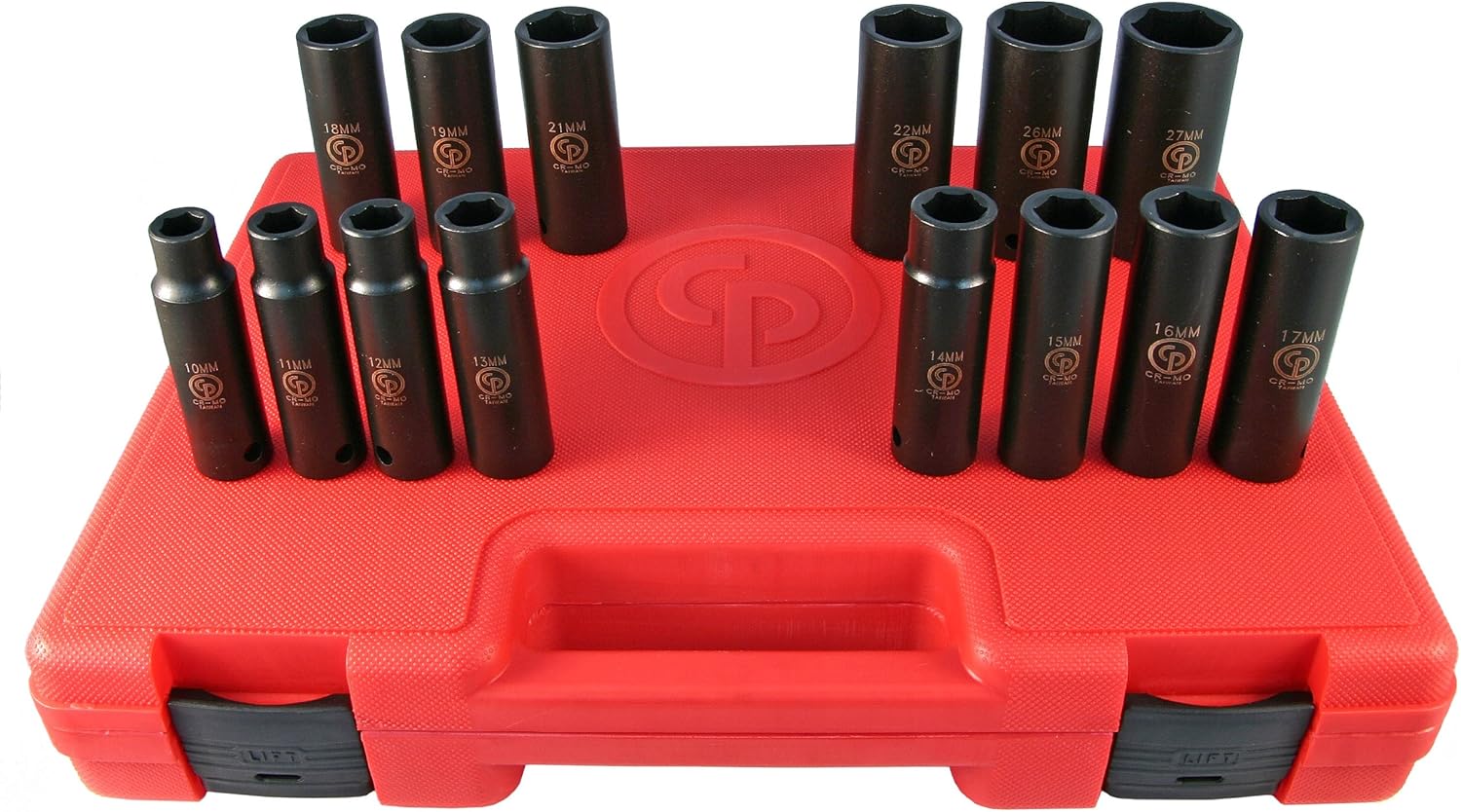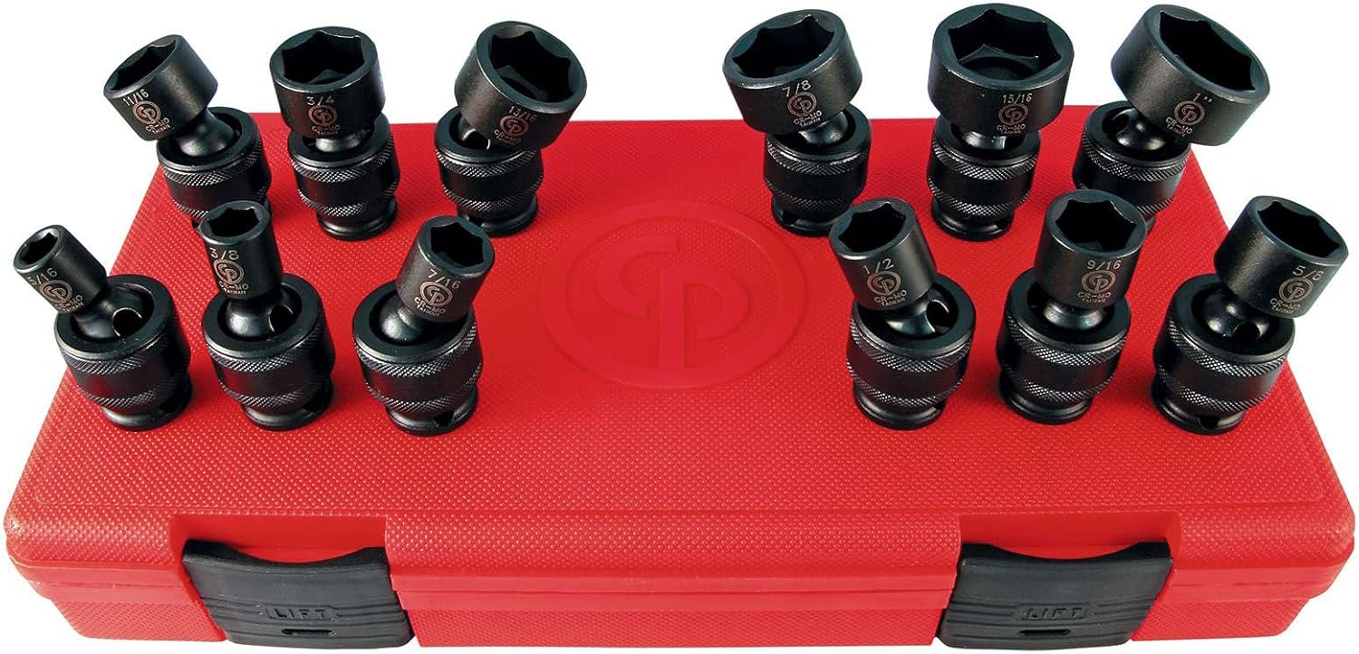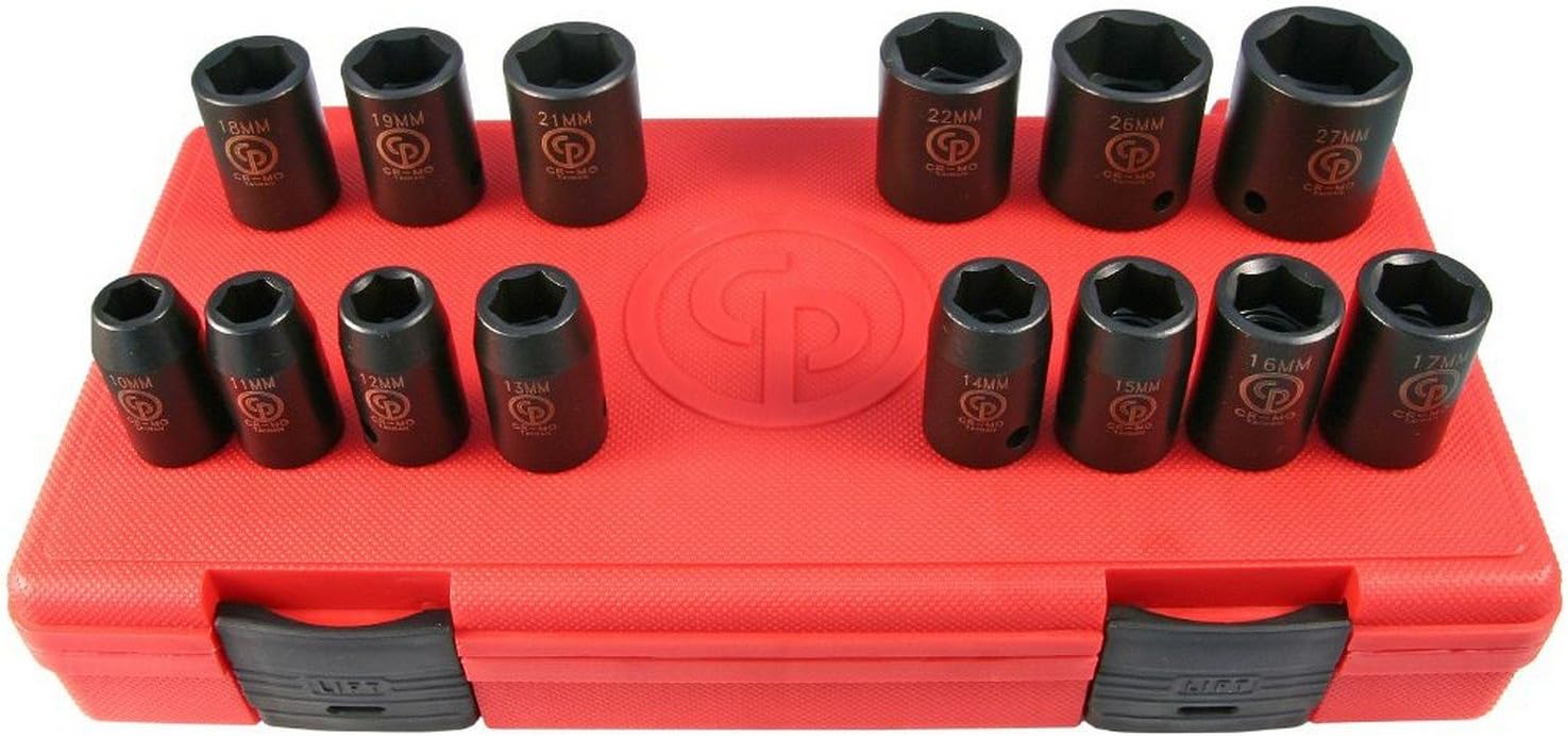 Product Description Impact sockets Chrome-molybdenum Steel and Phosphate manganese surface finish for extreme wear resistance, easy to read laser etched marking with output size, and model number. Impact sockets are designed to be used with impact and ratchet wrenches in high speed, high torque applications. Structurally, sockets are built to be soft and ductile so that they can easily deform and reform due to the immense stress exerted by the hammering action of an impact wrench. Designed with a cross hole in the handle end, compatible with a retaining pin and ring, or locking pin anvil. From the Manufacturer Premium Chrome-Moly Impact Sockets . Set includes 7, 8, 9, 10, 11, 12, 13, 14, 15, 16, 17, 18 & 19 mm sizes