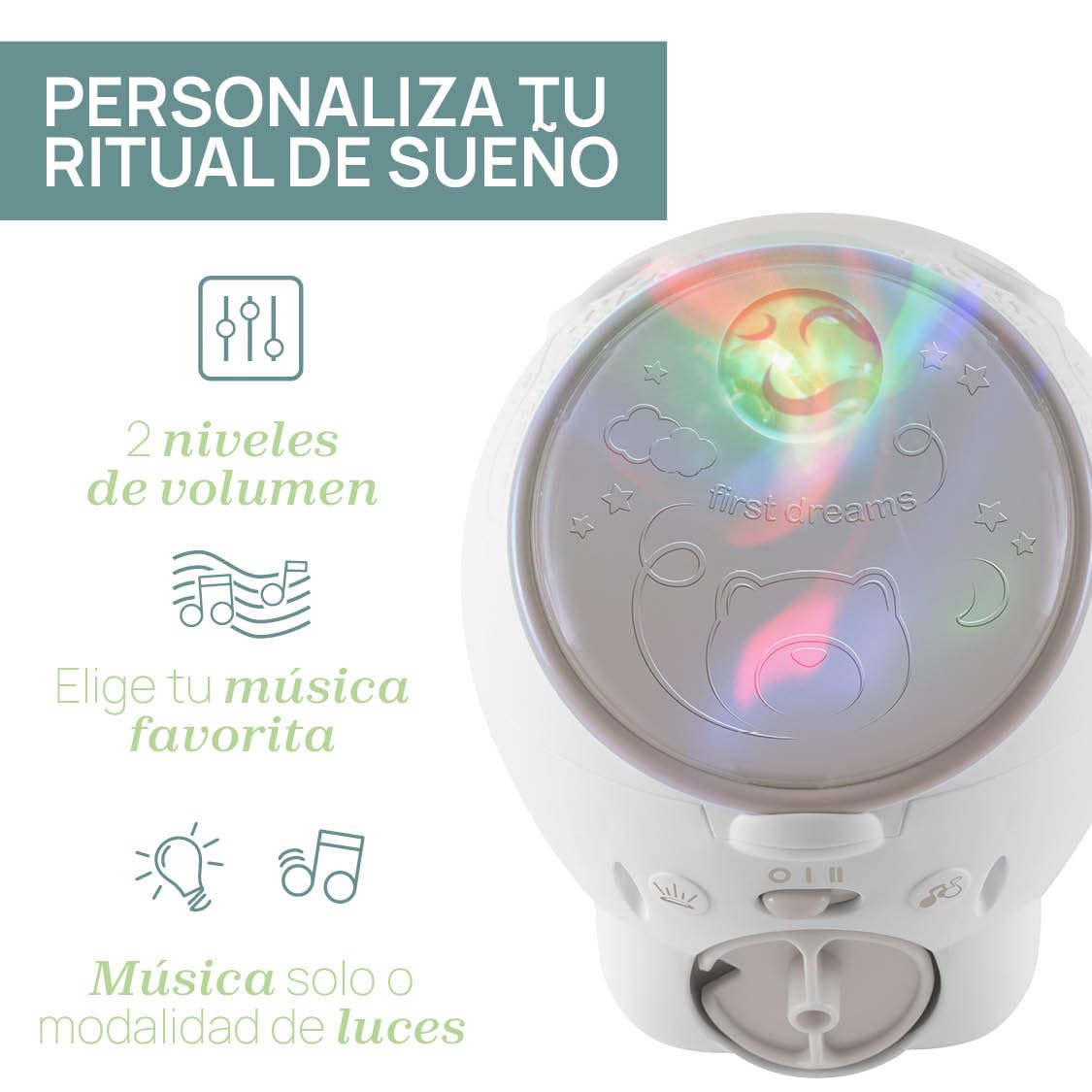 Chicco First Dreams Polar Bear Projector is an adorable projector with spectacular lighting effects and relaxing melodies. It can be used in two ways: as a projector to attach to the cot or as a projector to place on the bedside table. Chicco Polar Bear projects an aurora borealis for 30 minutes to create a wonderful atmosphere for baby's sleep, as well as 30 minutes of classical music (Mozart, Bach, Glinka) and nature sounds. The functions are customizable thanks to two buttons, one for selecting melodies and the other to turn the projection on and off, with 2 volume levels. Modular mounting system suitable for all Chicco Next2Me cots and beds with walls up to 38mm.