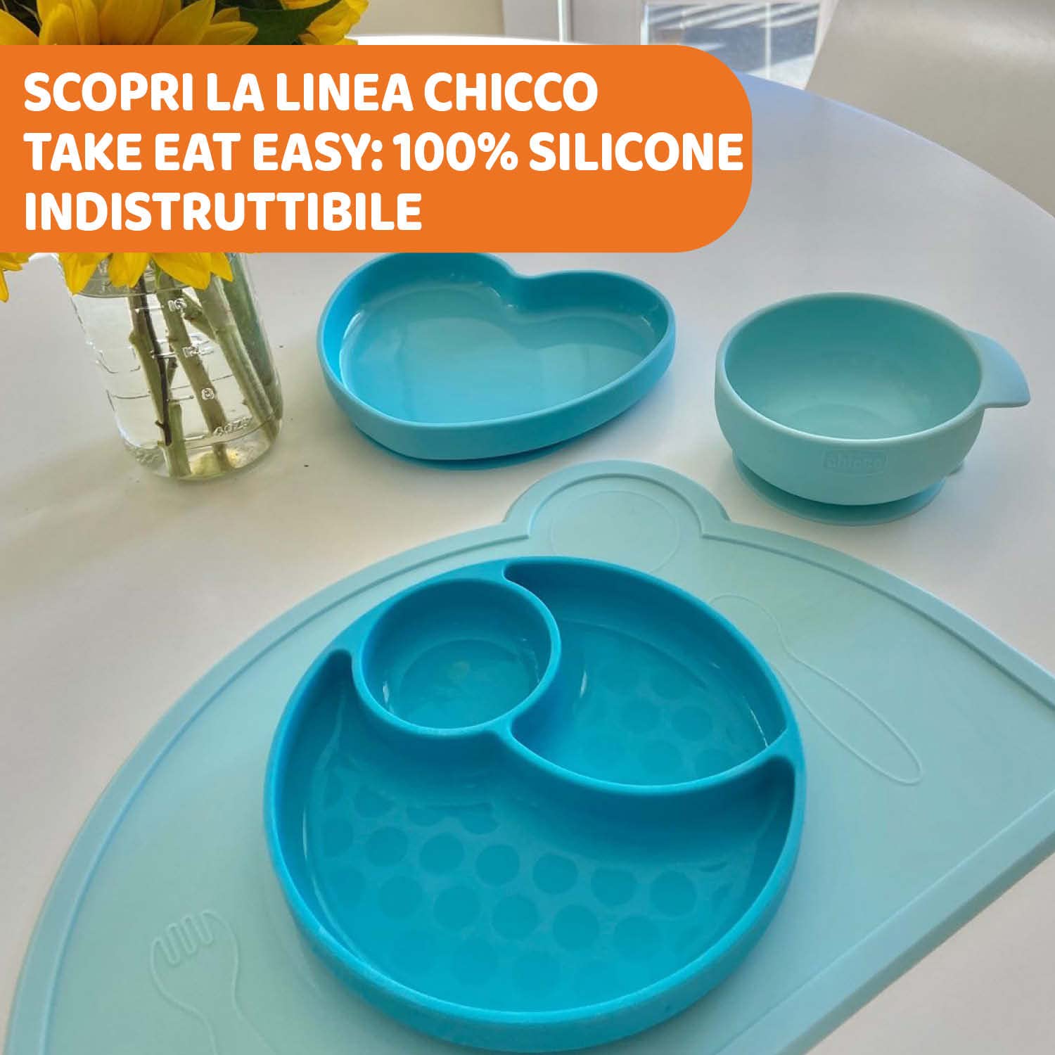 The Chicco Easy Bowl for babies is designed for babies from 6 months who are starting to eat more solid food. It is part of an evolutionary line designed to help children learn to eat themselves. The bowl is made of 100% high-quality silicone, is durable, flexible and easy to clean, even in the dishwasher. Silicone is a practical, durable and unbreakable material with a soft texture that feels comfortable. It is also better for the environment than plastic. The Chicco bowl features a suction cup on the bottom that prevents the plate from sliding and an ergonomic handle, ideal for helping the child learn to eat themselves. The plate can be placed in the microwave to quickly warm up the baby food. Produced with 0% BPA according to current regulations.