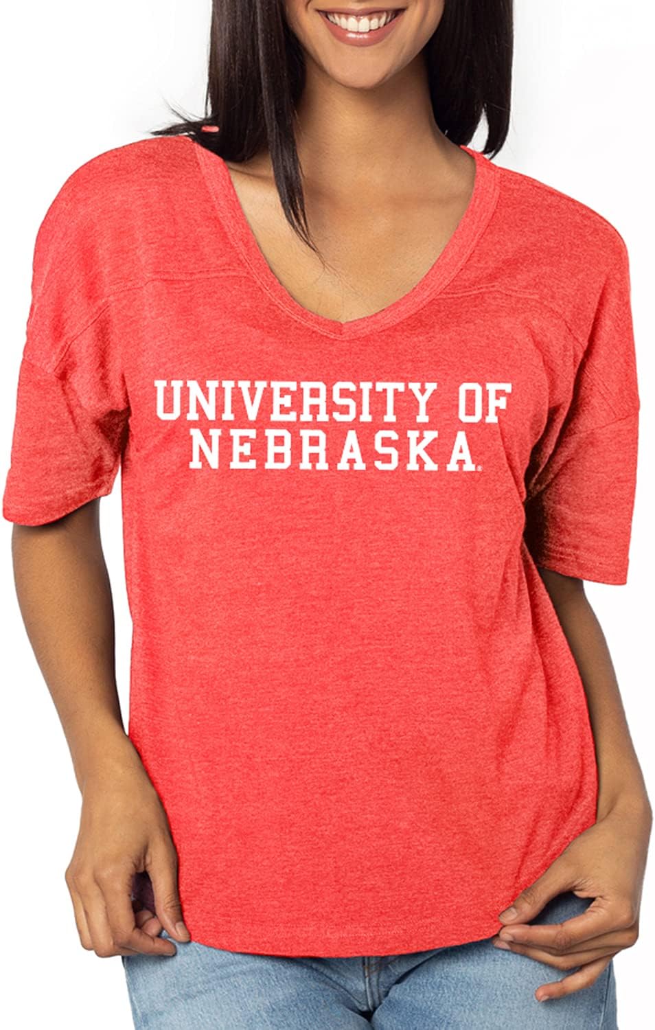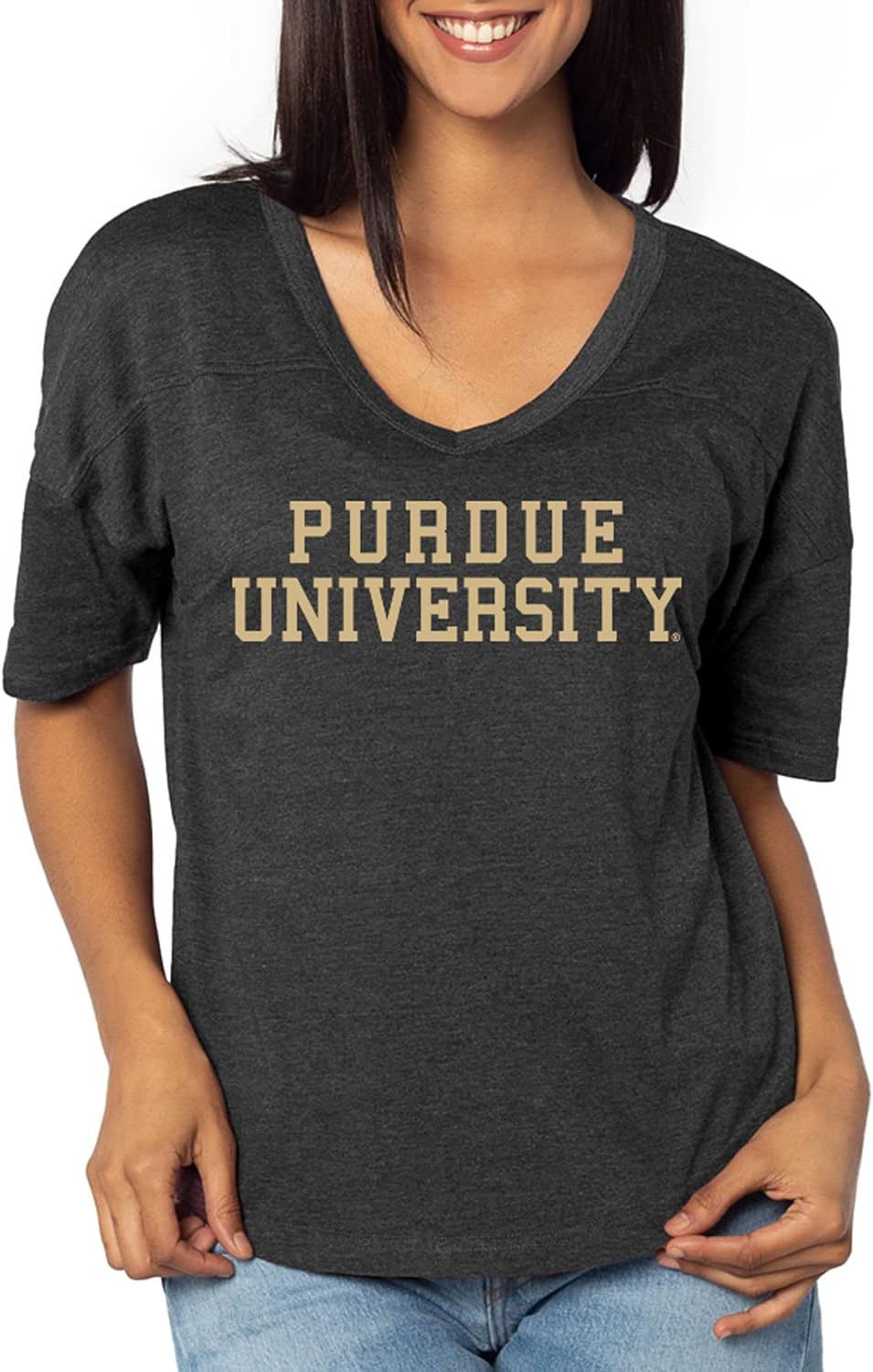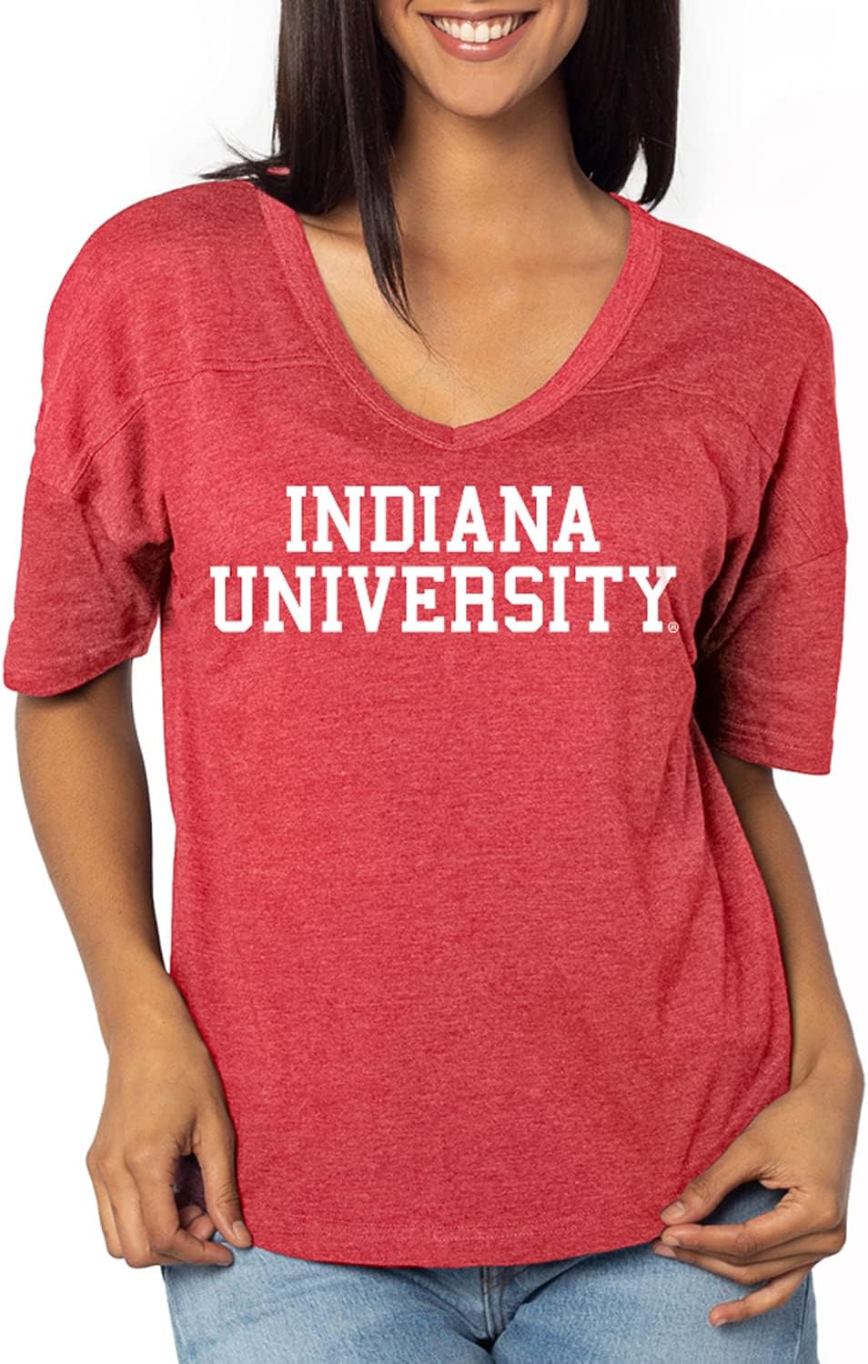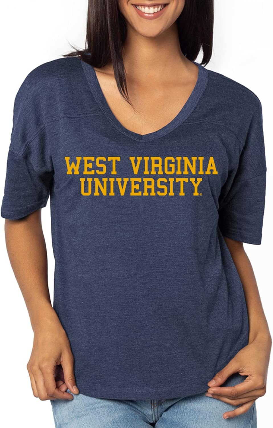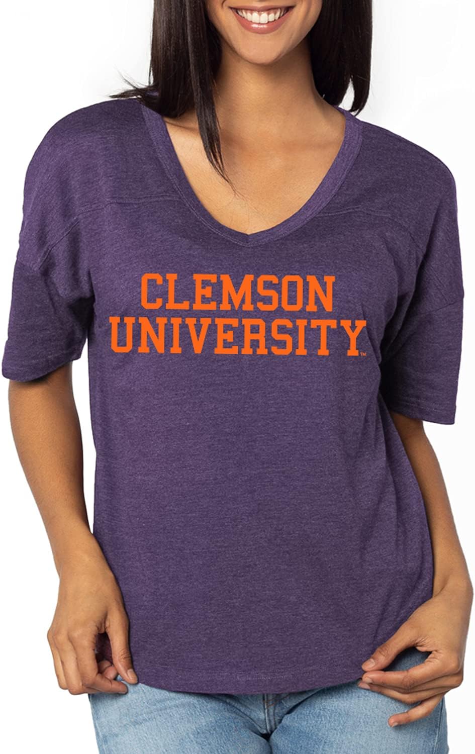 Look ready for game day in this jersey inspired silhouette. Feminine details include a rounded hem, yoke, v-neckline and longer short sleeves. Support your favorite team while staying on-trend with the NCAA officially licensed graphic.