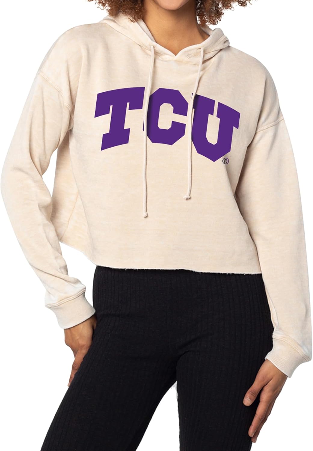 This on-trend cropped hoodie is sure to turn heads on gameday. It features a raw edge hemline, drawstring hood and dropped shoulders. The burnout wash process provides a unique, washed and worn look and a comfortable feel. The super soft burnout fleece fabric is made of a 60% Cotton, 40% Polyester blend and is made complete with an officially licensed graphic on the center chest.