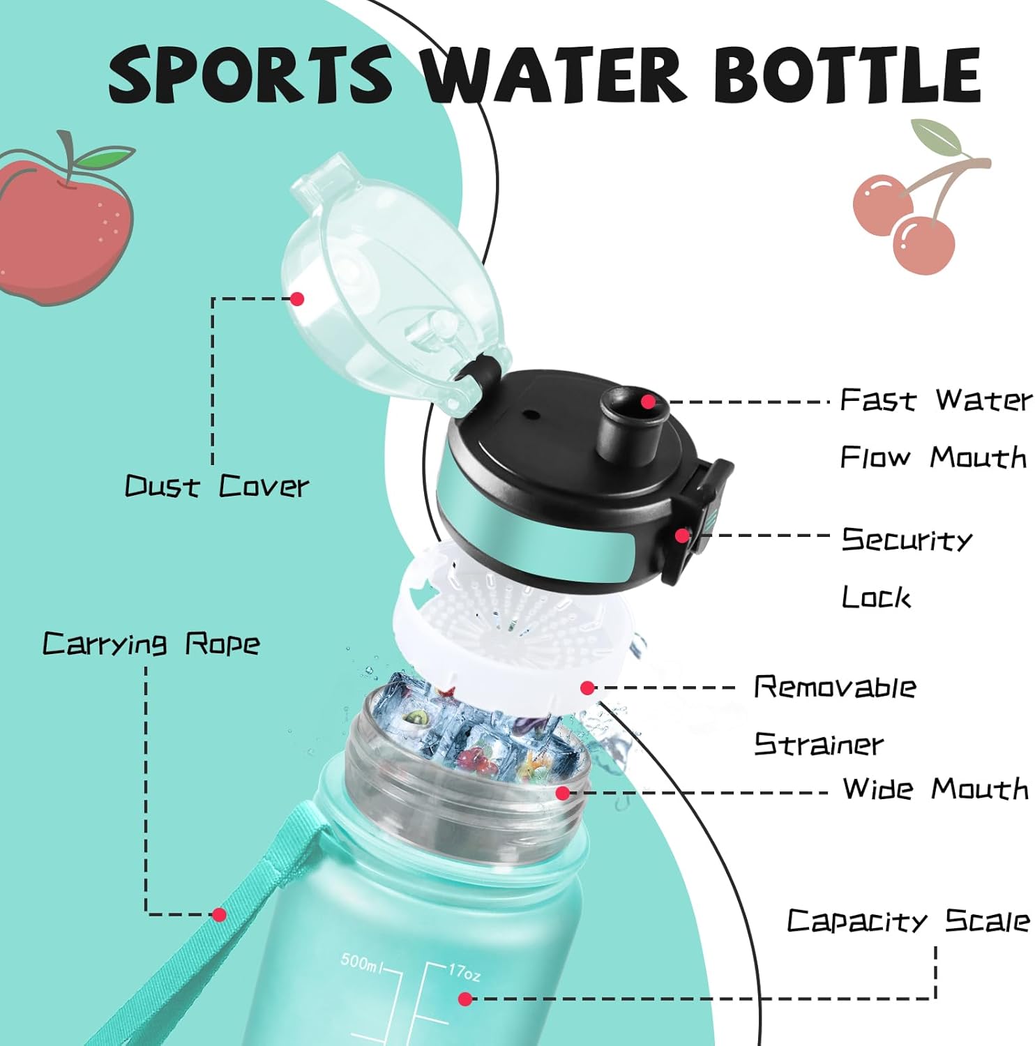 | Additional Features | Filter, Flip Top, Leak Proof, Reminder, Wide Mouth |