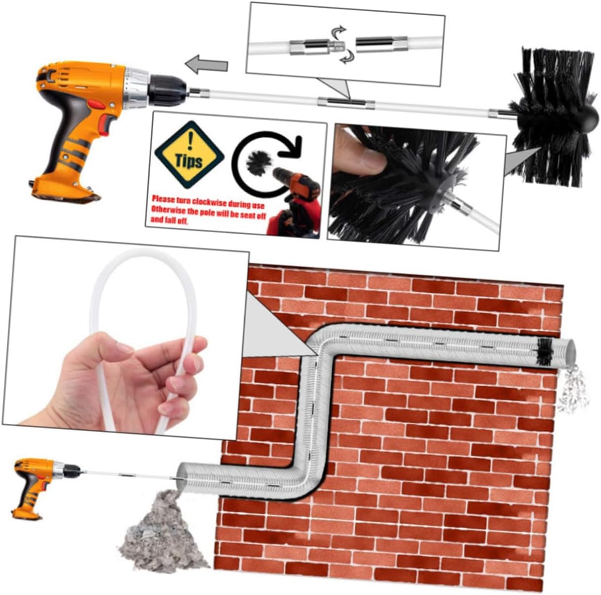 Package Include 4 x rods 1 x brush head Characteristics -Product Info:Cleaning brush - Size: 61.00X2.00X2.00cm/23.97X0.79X0.79inch. - Material: Nylon, galvanized iron. - Improving cloth dryer working performance by using this brush to cleaning up lint and dust in dryer vent, duct and exhaust port chimney cleaning rods. - This efficient dryer vent brush can be used with or without a power drill and will help you achieve professional results fireplace brush broom. - Removing lint buildup from your dryer duct helps reduce drying time and dryer performance, while extending the life of your dryer chimney sweeping tool. - - The design is simple in structure, easy to install. Very practical for home use lint brush for dryer vent. - Easy to use with simple instructions, this dryer vent cleaning kit delivers superior results and will help you prevent costly repairs dryer vent brush.Goods Descriptionbrush to clean dryer vent This is a dryer vent cleaning brush set.lint remover dryer vent vacuum Provide multipurpose tool for cleaning your dryer, duct, chimney, vent, , and etc.dryer vent tube cleaner It is made of premim material, flexible, sturdy and to use