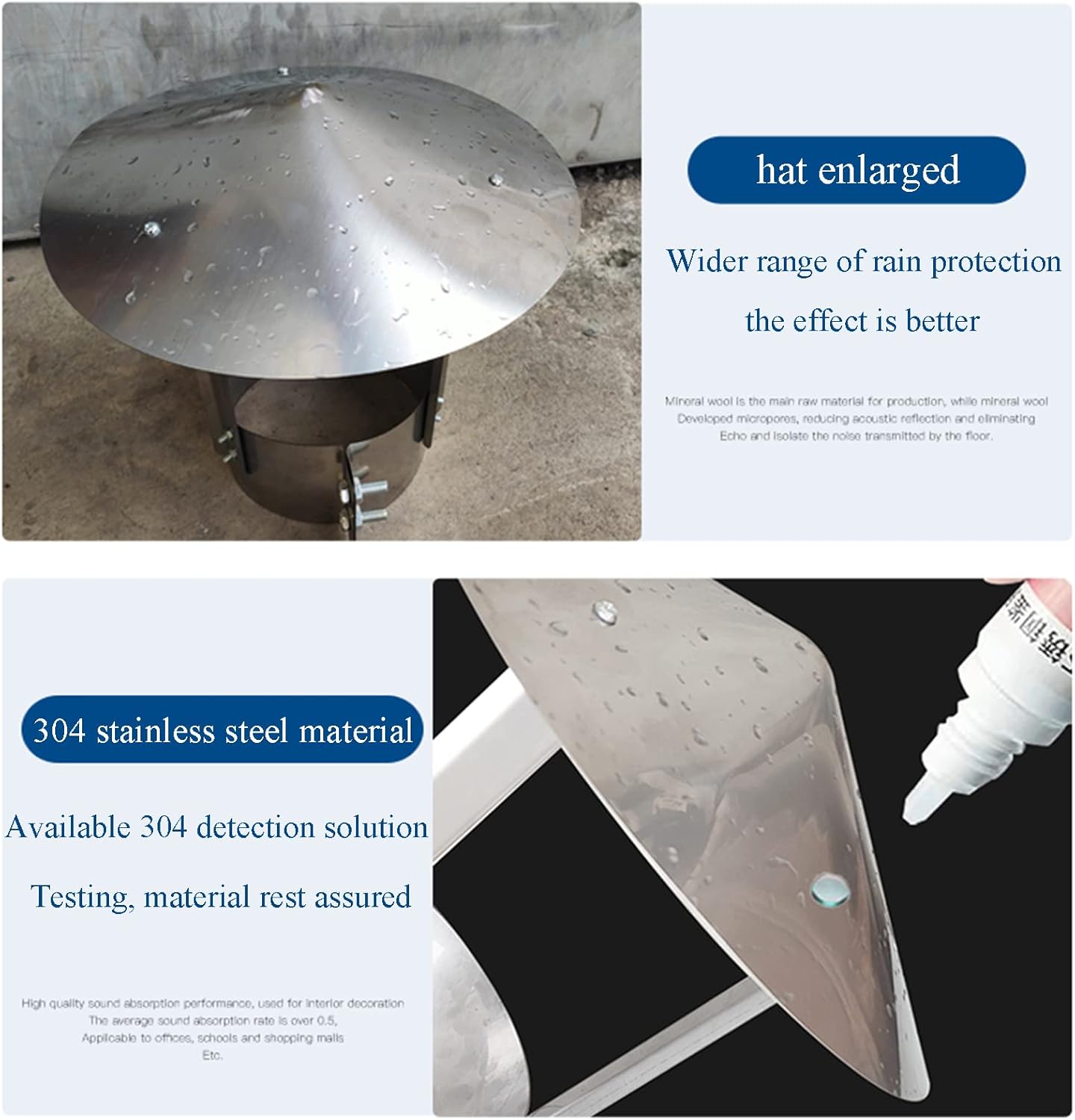 Key Features:-Adjustable hoop design: Easily adjust the size by lengthening the screw, effectively solving any size errors.-Large brim and increased hat label size: Enhance the rainproof effect and provide better protection against the elements.-Minimalist stainless steel design: Simple, beautiful, and practical.-Reinforced and clamp design: With a sturdy support frame, our chimney hood can withstand strong winds and rain.Product Details:- Material: Stainless steel- Thickness: 0.7mm- High temperature resistance: Up to 450°C- Welding process: Plasma welding- Protects against rain, snow, wind, and small animalsProduct Name: Chimney HoodProduct Size: Diameter 80-300mm (customizable)Measurement Methods for Pipe Size:1. Direct measurement: Measure the pipe dimensions, including wall thickness, to determine the size.2. Rope measurement: If it is difficult to directly measure the pipe diameter, wrap a rope around the pipe and measure its length.