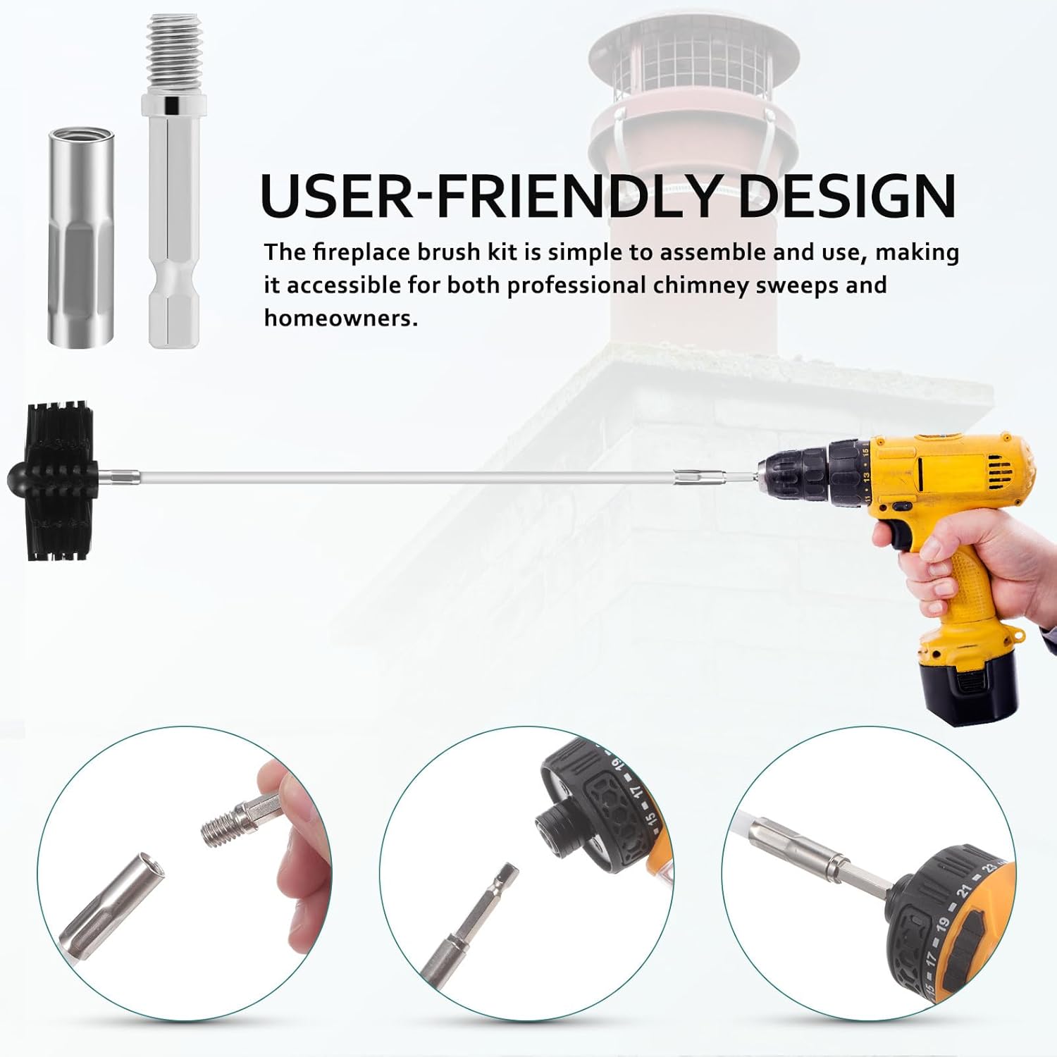 Package List 15 x rods 1 x 4'' brush head 1 x 6'' brush head 1 x hex nut 1 x roll of tape Features -Enhanced fireplace efficiency: Regular cleaning with this chimney brush set can the draw of your chimney, leading to increased heating efficiency stove pipe clean brush -Size:15.00X15.00X6.00cm/5.89X5.89X2.36in -User-friendly design: The fireplace brush kit is simple to assemble and use, making it accessible for both professional chimney sweeps and homeowners stove clean brush -Versatile application: This wire brush set is not only ideal for chimneys but also suitable for cleaning dryer vents, ducts, and other hard-to-reach areas fireplace brush replacement head -Flexible rods: The flexible rods can be easily connected to reach various lengths, allowing you to clean chimneys of different heights and configurations with ease cleaning brush -Product Info: Chimney cleaning brush set -High efficiency cleaning: Equipped with a sturdy wire brush head, this chimney sweeping set offers efficient removal of soot, and other debris vent brush -Material:Plastic -Color:BlackGoods Informationwood stove chimney cleaner The chimney cleaning brush set is designed to provide a comprehensive kit for maintaining and cleaning your chimney.cleaning fireplace brush The brushes can withstand the rigors of chimney cleaning, making them a reliable choice for homeowners.fireplace chimney brushes This set includes wire brushes and flexible rods that are specifically crafted to reach every corner of your chimney, providing thorough cleaning