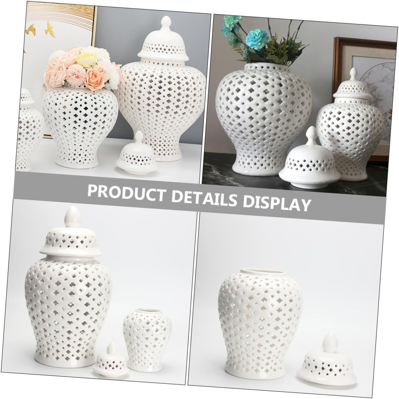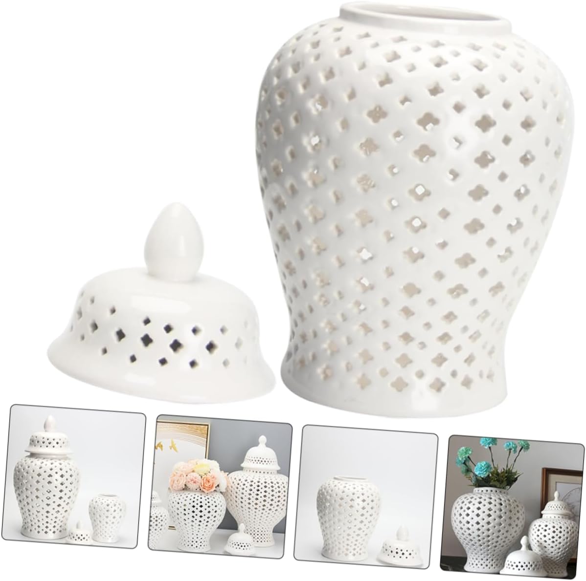 Package List 1 x hollow out jar Characteristics -Size: 21.00X12.00X12.00cm/8.25X4.72X4.72in ginger jar -Color:White vase -Material:Ceramic vases - The hollow vase can be decorated with flowers and placed on the wedding party as wedding party decors flower vase. - This unique design hollow vase, made of reliable ceramic material, which is for long time use ginger jar flower vase. - Ceramic jar is for various occasions, such as balcony, patio, garden, wedding decoration, etc ceramic ginger jar. - The product's fine workmanship and creative retro design make it a wonderful decoration for you vase decor. - It can be a wonderful your friends or family members who love planting flowers jars decorative.Goods Descriptionvases This kind of artistic vase is suitable for decorating your home, balcony, garden, etc.ginger jar Do you want to have a creative hollow flower Vase? The decoration is made of ceramic materials and use.decorative jar It is also a major decoration of the home.vase The appearance is simple and beautiful, and the texture is