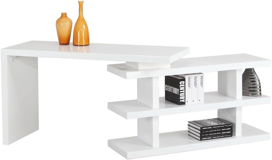 The ideal choice for your home office this desk provides style and stability. The beautiful white glossy finish offers a clean look while the turnable shelf base offers plenty of storage. Desk depth opens from 19.69 to 53.15 inches.