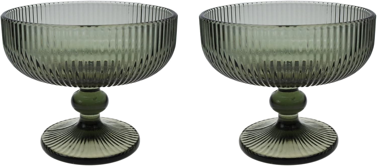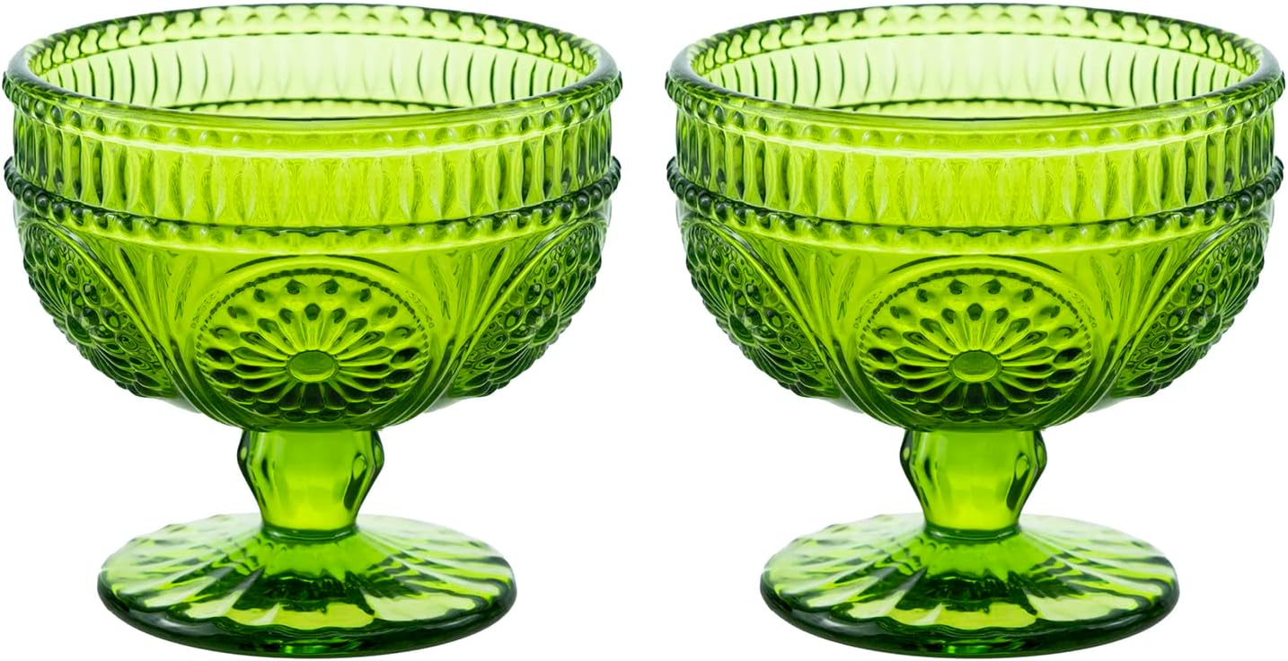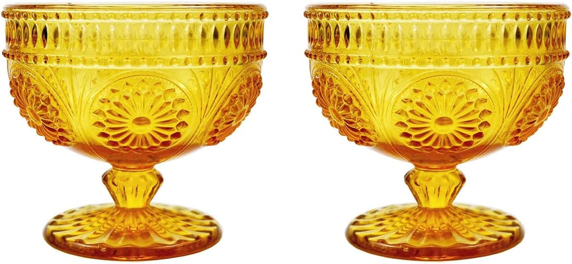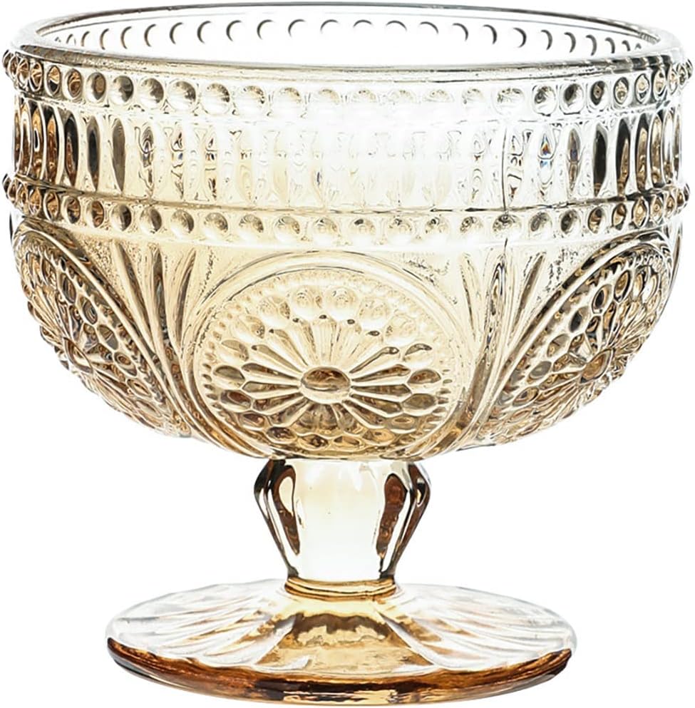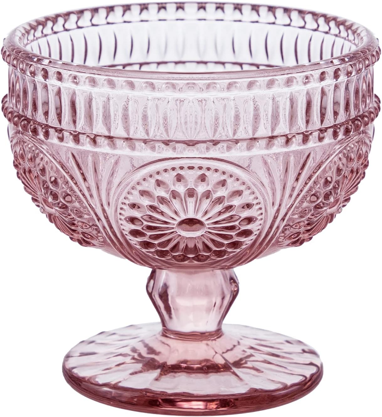 CHOOLD Vintage Sunflower Embossed Glass Footed Dessert Bowl Ice Cream Bowl Trifle Bowl Salad Bowl Candy Cake Bowl for Home Party Wedding 9 oz, Pink, Set of 4