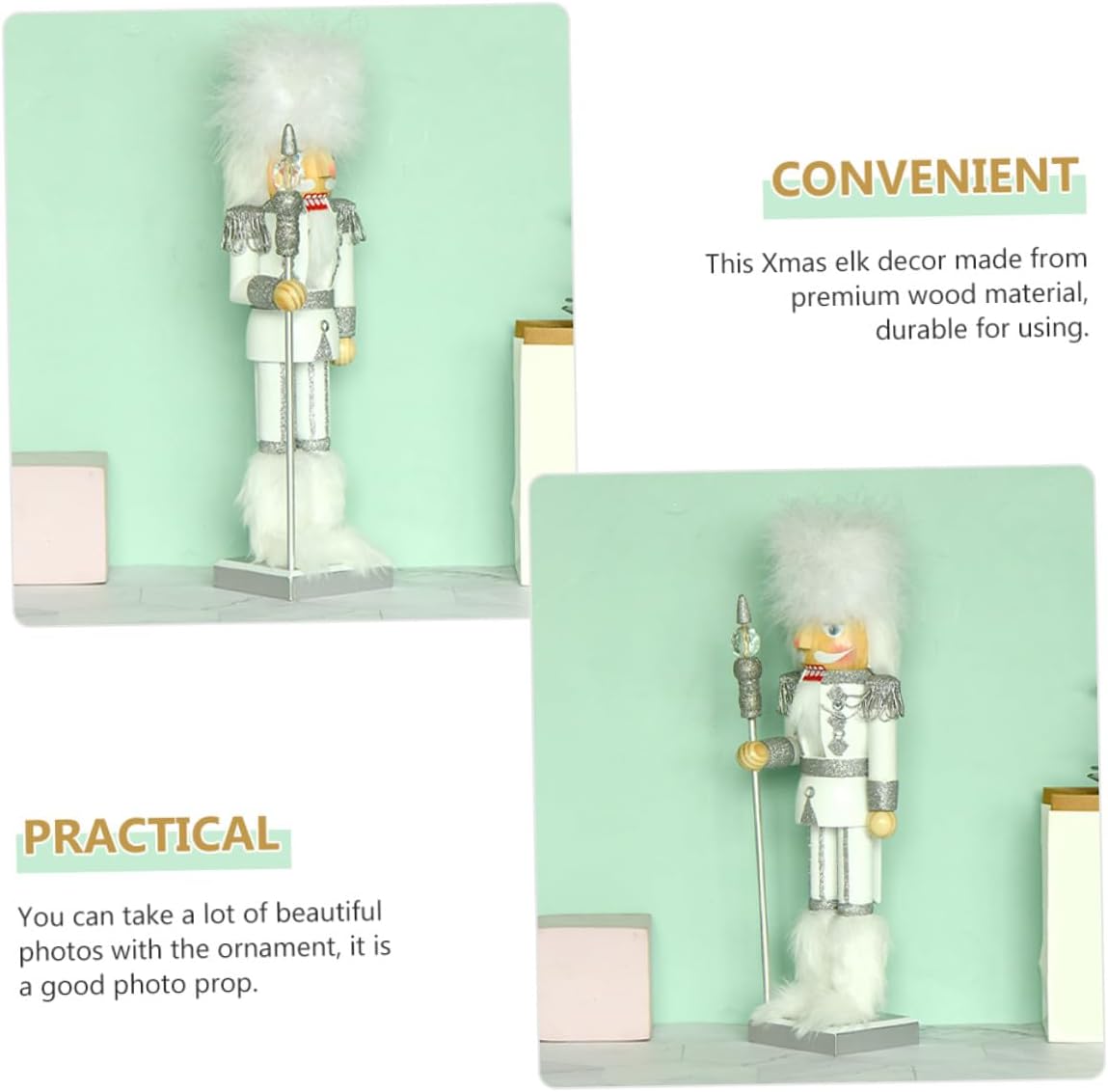 Package Include 1 x Adornment Features - Material: As shown - Size: 35.00X10.00X8.00cm/13.76X3.93X3.14in - Color: White -Product Info:Nutcracker puppet man - It can be used as home and shop decoration as well as a party scene decor nutcracker craft. - It is made of wood material with workmanship to be the good decor for Christmas. - Put it on the tabletop, cabinet, desk or any other place, add your home more festival atmosphere miniature nutcracker figurines. - It can create a Christmas festive atmosphere, let people feel warm and happy Holiday Nutcracker Puppet. - Creative nutcracker shape design, beautiful appearance, ensure its popularity during Christmas nutcracker kitchen decor.Goods Descriptiontraditional nutcracker soldier Can decorate home, office, restaurant, hotel, shop and any other places.the nutcracker prince Designed to create a strong and festive atmosphere for Christmas.nutcracker ornaments This Christmas nutcracker ornament is made of wood material that can be used for a long term.nutcracker desktop decoration Make a unique Christmas gift for your family and friends!