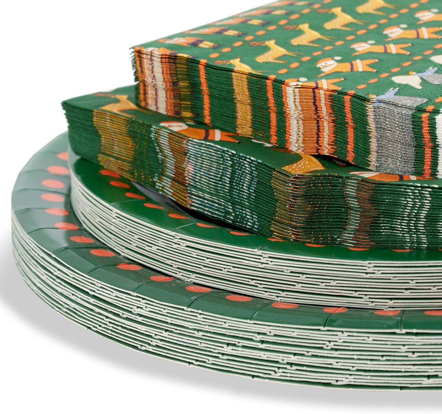 The Feliz Navidad 80 piece decorative paper plate and napkin set is perfect for any event or occasion - cocktail or dinner party, engagement party, gender reveal, bridal shower or luncheon, mother's or father's day, birthday party, pool party, reunion, anniversary and any holiday or gathering. Premium plates and napkins so durable and thick, your guests will not only love the designs, but the plates will be strong enough to pile on the food in the buffet line! Create unforgettable moments with these fun and decorative designs for your next event. Maximum style with minimum cleanup when you use Fabuplates. Live it up with no cleanup!