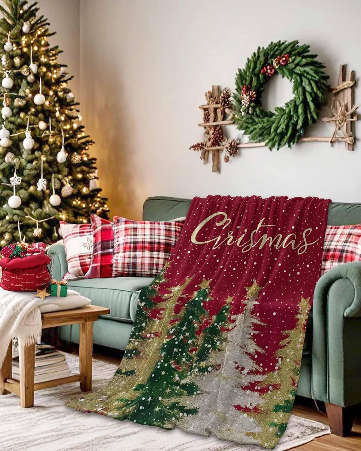 Christmas Throw Blanket for All Season Give Your Cozy LifeMulti Size Choices30x40 Inch / 40x50 Inch / 40x60 Inch / 50x60 Inch / 50x80 Inch /60x80 InchWarm & SoftSoft flannel, making you feel comfortable and smooth. Our Christmas throw blanket is incredibly soft to the touch enveloping you in its warmth and comfort.Easy to Store & CarryYou can take it when traveling, snuggle it in the plane, swaddle yourself on the morning/evening beach, cuddle it through a horror movie, or wear it on a camping/ picnic.Versatile OccasionPerfect for your couch, sofa, sectional, loveseat, recliner or bed. Great for relaxing around the house, watching TV, reading a book, snuggling or cuddling. Bring you ultimate softness and warmth.Exquisite Pattern & Ideal GiftEye-catching patterns, fashionable but elegant, classic but popular, add enough comfort, also a great decor to your home. Warm Gift for your family, friend and lover.Warm Into Your LifeGreat Sewing on a blanket means long-lasting wear. Unique printing process to give a blanket of different values, and use it to welcome the arrival of every season.Warm TipBoth machine and hand washable with gentle cycle and lay flat to dry, no bleach, iron on low heat if required.The same picture shows a slight color difference in different devices.