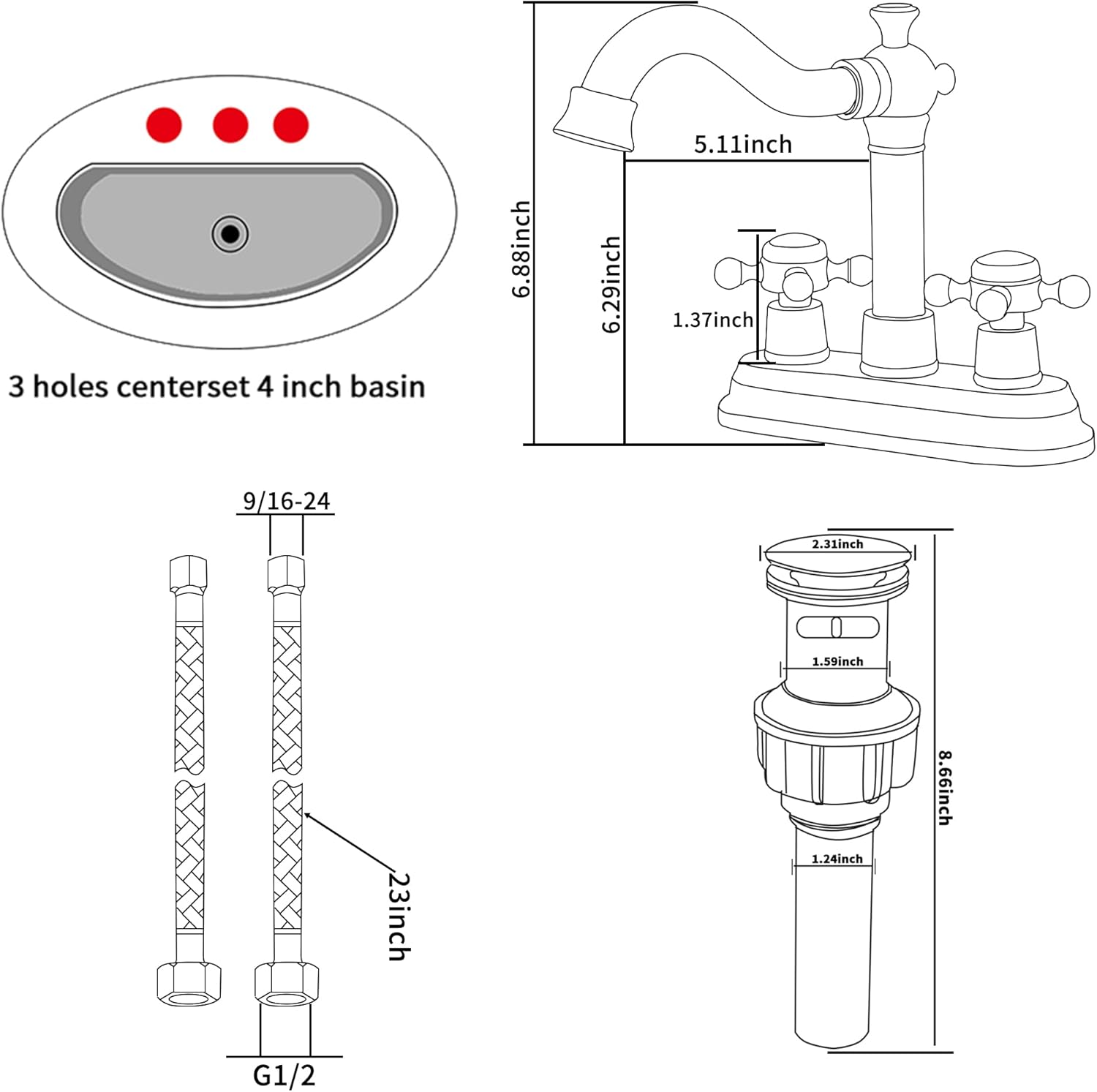 | Included Components | Drain, Handle, Instruction Manual |