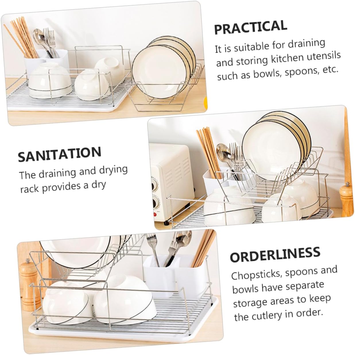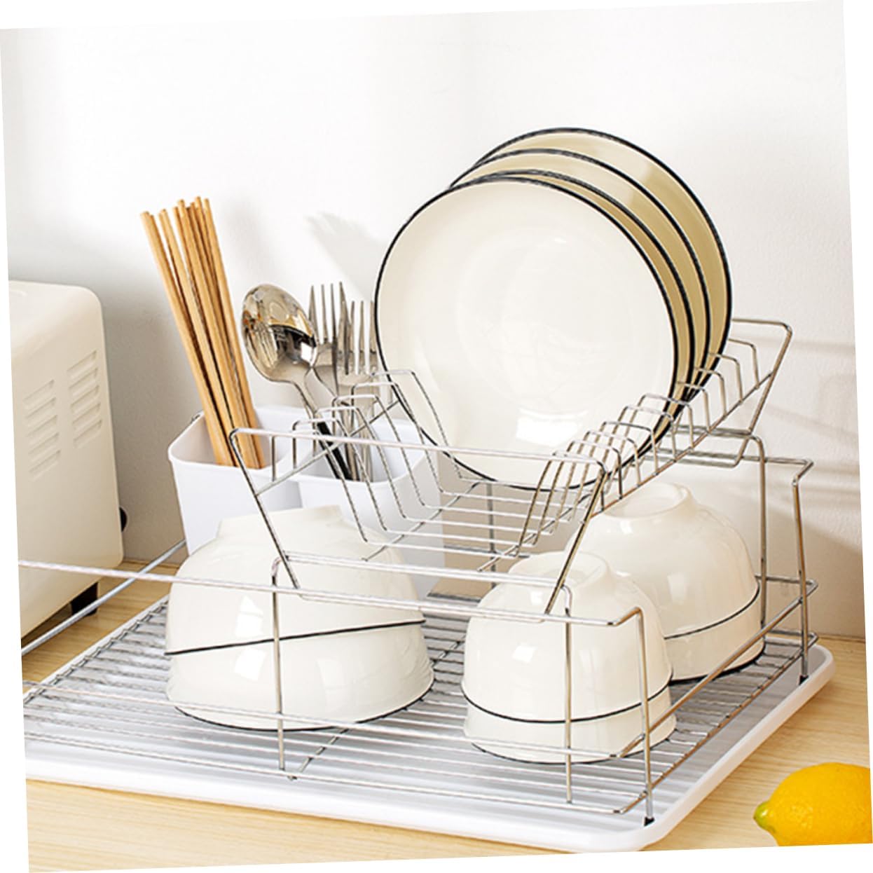 Package Include 1 x storage rack Features - Size: Approx. 42.50X32.00X21.00cm/16.70X12.58X8.25in silverware drying basket. - Material: Stainless steel draining rack. - Color: White cutlery rack. - Large capacity, can accommodate much tableware. Keep your kitchen utensil clean and organized kitchen dish drying rack. - Adoption of premium stainless steel material, and , not easy to deform and break Dish Drying Organizer. - Double-layer shelf, large capacity design, can store bowls, plates, saucers, cups and other items dry rack for dishes. - Drainage design performs daily use, which can prevent water from tableware or kitchen tools compact dish drying rack. - Plates can be placed on the upper layer, or they can be detached and placed separately Draining Bracket.Goods Descriptionutensil rack Plates can be placed on the upper layer, or they can be detached and placed separately.utensil drying racks This item is a dish drying rack, adoption of premium stainless steel material, and , not easy to deform and break.silverware drying rack Double-layer shelf, large capacity design, can store bowls, plates, saucers, cups and other items