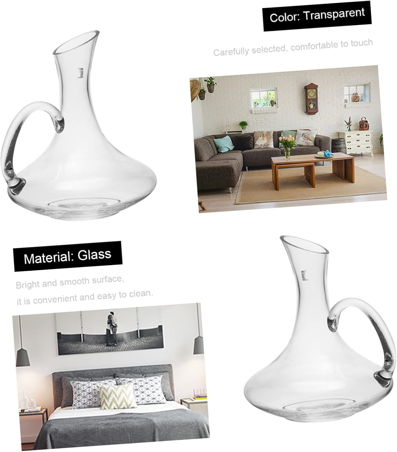 Package Include 1 x 1500ml wine decanter Characteristics -Product Info:Decanter -Color: Transparent empty whiskey bottles. -Material: Glass wine pourer. -Size: 22.00X19.00X22.00cm/8.65X7.47X8.65in wine pitcher -It can the purity, aroma and taste of your favorite red or white wine glass Decanter. -An wine decanter is perfect for enhancing the flavor of your favorite wines liquor decanter bottles. -Fine workmanship, clear and transparent, which can show high-end atmosphere red wine pourer. -Creative shape design, modern and elegant, improving your drinking experience liquor dispenser. -It has a simple design, but practical in use, giving you a wine aerator decanter.Goods Descriptionpractical wine decanter It is made from glass material, which can be used for a long time.bottle decanter with handle This wine decanter can the flavor of your favorite wines.wine bottle decanter The bottom of the wine decanter is thick, so it can be placed on the table smoothly without worrying about toppling