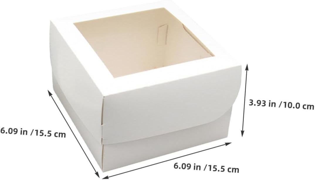 Package Include 25 x Cake Boxes Characteristics -Size:15.50X15.50X10.00cm/6.09X6.09X3.93in -Versatile food packaging boxes: these pastry containers are suitable for various desserts, including chocolate, macarons, and pies, making them a versatile choice for bakery takeout containers sweet cake boxes -Compact design for small pastry boxes: sized for cakes, these small pastry boxes with window offer a sleek and portable solution for packaging desserts, ensuring freshness and presentation -Material:Paperboard,PVC - paper cake carrying box: made from paper, these bakery dessert boxes are sturdy and reliable, ensuring safe transportation of cakes, cupcakes, and other baked goods bakery boxes with window -Transparent window for bakery display box: the clear window design allows customers to view your bakery treats, making these cake boxes with window ideal for showcasing desserts like mousse, cupcakes, and pastries treat boxes for cupcakes -Product Info: Baking packaging boxes -Color:White -Paper dessert boxes: crafted from recyclable materials, these paper bakery boxes are an option for packaging cakes and treats, reducing waste while maintaining qualityGoods Informationcupcake carrier These paper cake boxes with window are designed for showcasing small pastries, desserts, or cupcakes.small treat boxes with window The transparent window highlights your treats, making them for bakery display boxes or takeout food containers.boxes for desserts Ideal for present or transporting, these bakery dessert boxes your creations stay fresh and presentable