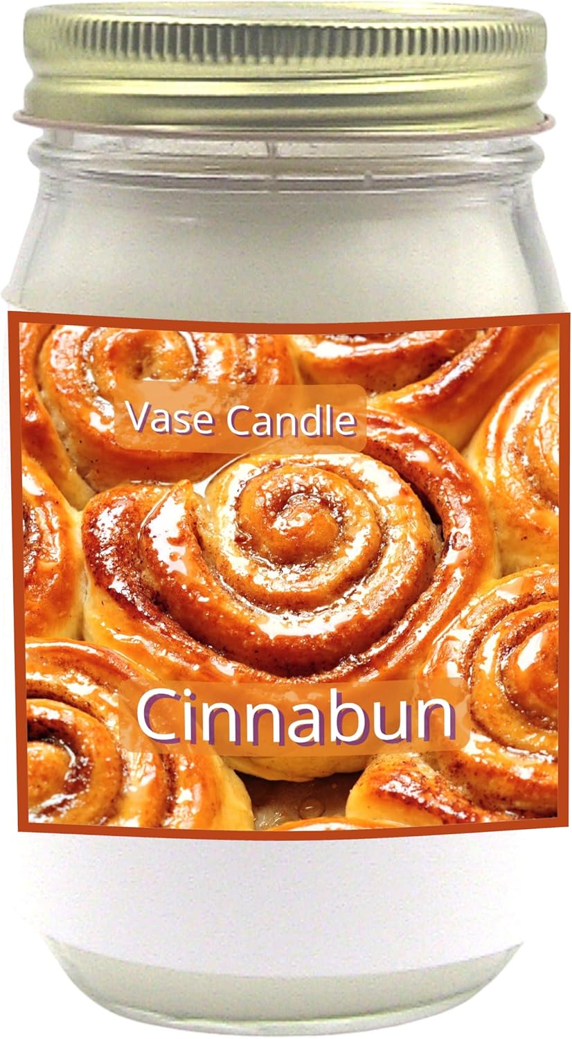 Cinnabun - Cinnamon, Brown Sugar, Cake, Icing.Clear Vase Dish Set 1 refillable Clear Glass Satin Vase and 1 Clear Glass Satin Dish - each one unique. Our vases average between 5" to 7" tall and can be as wide as 5" at the top and 2" at the bottom. The dishes are between 8" and 9" across and no more than 4" tall. Our Clear Vases and Dishes are made from regular window glass with a high silica content. Very elegant and tough - great as a daily burner. 2 Candle Refills with a 50 hour Burn Time each | Total of 100 hour burn time. Each Vase Candle Refill | 6 oz | 50 Hour Burn Time | 2.5" width x 3.8" height. The Candles and Melts are fresh and poured to order with fragrance all the way through the creamy, soft, uncolored paraffin/soy blend wax for excellent throw and clean-up. We use a Self-Trimming, Paper Core Wick, premium fragrances, and uncolored wax so that nothing gets in the way of a clean burn. No Coloring Added - the Wax is a Natural Creamy White Color.