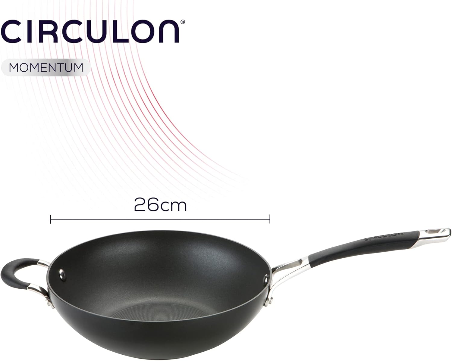 The Circulon Momentum frying pan is made of hard anodised aluminium. We are proud pioneers in hard anodised cookware. Circulon's frying pans are twice as strong as stainless steel and deliver outstanding durability. On top of this, this material allows fast heating and even distribution of the heat. This will not only help you save time and energy, but it will also reduce hot spots that can burn food, meaning every meal will be a success. Circulon's Premium 3 layer Total Non Stick System featuring the Hi-Low groove design has been added to this anodised wok frying pan. This technology will reduce abrasion to provide an enhanced non stick surface that will last 15 times longer than Circulon's competitor. In addition, Circulon's non stick wok pan will allow you to cook healthier meals with no or little oil, and save time cleaning as no food will stick to the pan. And don’t forget, to be extra safe, this PFAO free stirfry pan is also lead free and cadmium free. Circulon's Momentum wok induction pan is suitable for all hobs, including induction, gas, halogen, radiant ring, solid plate and ceramic. The soft grip comfortable handle will make it a wonderful experience to cook whatever you favourite hob is. This large wok pan is oven safe up to 204 degree Celsius/Gas Mark 6 and will allow you to be versatile and cook hob to oven deliciousness. It is also dishwasher safe and metal utensil safe, meaning you’ll spend less time cleaning and more time doing what you love. For a complete peace of mind, this product is sold with a complete hassle-free lifetime guarantee. For over 30 years Circulon has used innovation and technology to provide a lifetime of performance. With features to help the everyday chef produce healthy meals, Circulon cookware is perfect for you don’t have the luxury of lots of time to get food prepared, but still want to sit down and enjoy delicious meals.
