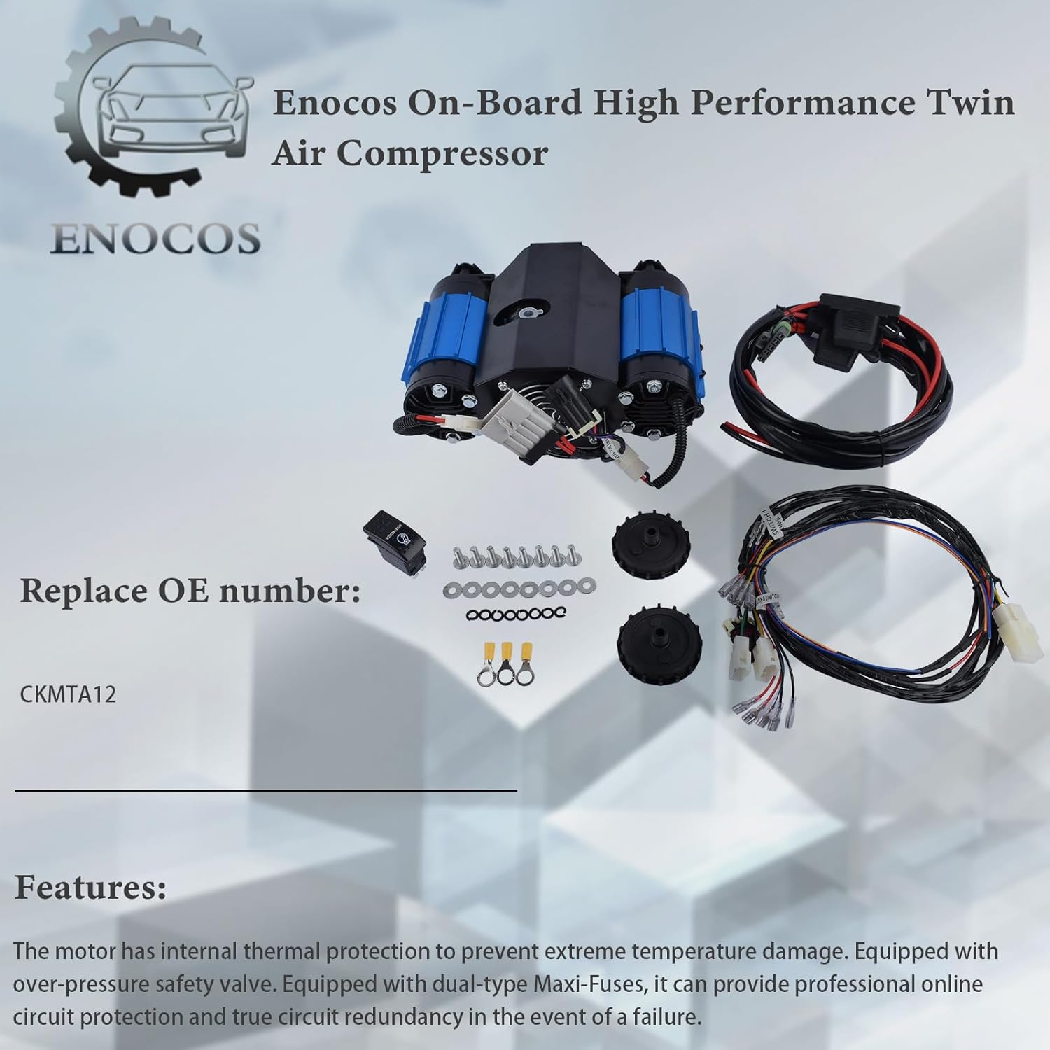 The motor has internal thermal protection to prevent extreme temperature damage. Equipped with over-pressure safety valve. Equipped with dual-type Maxi-Fuses, it can provide professional online circuit protection and true circuit redundancy in the event of a failure.