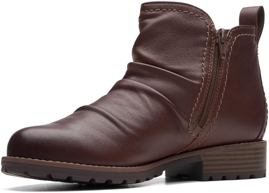 The ankle-high Clarks® Aspra Walk Waterproof boots are designed to accompany you everywhere, from dawn to dusk. made of leather upper, fabric lining, and foam footbed; the boots feature a rugged outlook with a wrinkled front. A plain toe, side zip closure, and ankle-high design make it ideal to wear outdoors. The boots are waterproof.