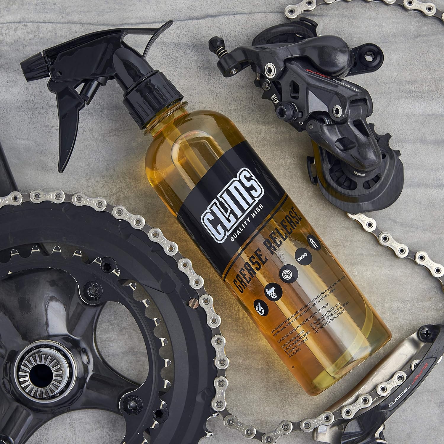 CLINS focus on cleaning and beauty for our bicycles, we work with the highest standards of products that are not abrasive or polluting. Specially created for all types of bicycles, road,mountain, bmx or causals. Our products have not been tested on animals and we are committed to the environment Mode of Use: - Apply irst the DEGREASER over the whole drive train and the chain evenly over the entire surface that it's going to be cleaned. - Let the product act for 30- 60 seconds and let to act over the parts - Moisten the whole bicycle surface to remove excess of mud and dust and Apply the Shampoo evenly over the entire surface that it's going to be cleaned. - Rinse with plenty of water. - Finally, Dry the surface and apply the BIKE PROTECT evenly with a clean and dry absorbent towel. - Use the Dry wash when you want to clean Bike without the need of get wet the whole Bicycle.