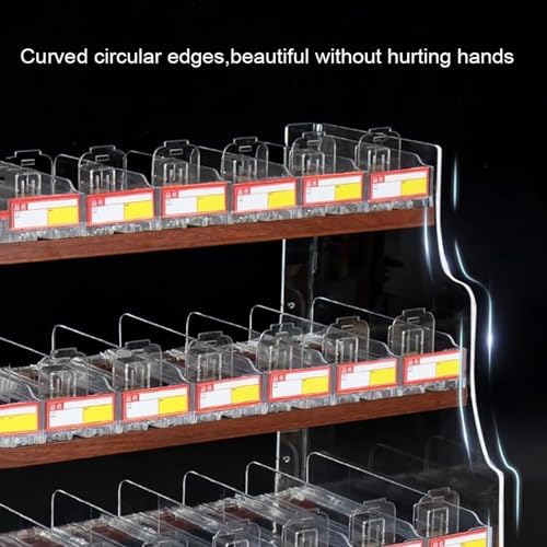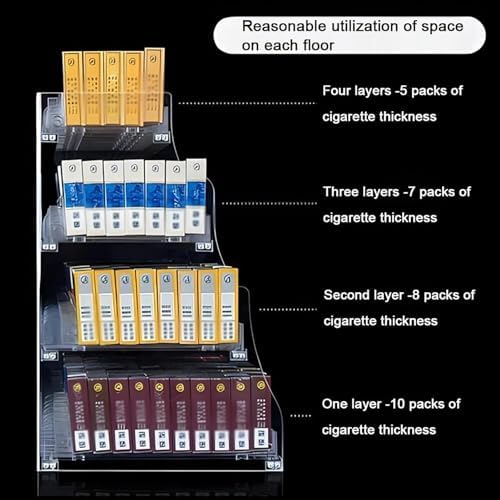 Introducing the Acrylic Trapezoid Cigarette Case Holder, an essential display solution for retailers aiming to enhance their product presentation. Made from premium transparent acrylic, this cigarette holder not only elegantly showcases your cigarette variety but also brings a contemporary flair to any retail space. With adjustable sizes from 32.5cm to 74.5cm in length and a width of 29cm, it fits seamlessly into diverse store layouts. The height options between 22.5cm to 61.5cm allow for flexible placements in high-traffic areas like shopping malls, supermarkets, convenience stores, bars, and coffee shops. This display stand is designed to accommodate between 90 to 456 packs of cigarettes, catering to the needs of bustling retail environments. A key feature is the automatic cigarette pusher, which facilitates effortless access for customers while maintaining a neat display. This innovative design not only improves the shopping experience but also promotes impulse purchases, making it an ideal addition to your retail strategy. Whether you're revamping your store or looking for an efficient storage solution, the Acrylic Trapezoid Cigarette Case Holder harmonizes style and practicality. It optimizes display space while offering customers an unobstructed view of their options. Please note that all measurements are approximate and may vary slightly due to manual measuring. Additionally, colors may appear differently due to lighting and screen settings. Elevate your retail display and encourage sales with this versatile cigarette display stand.